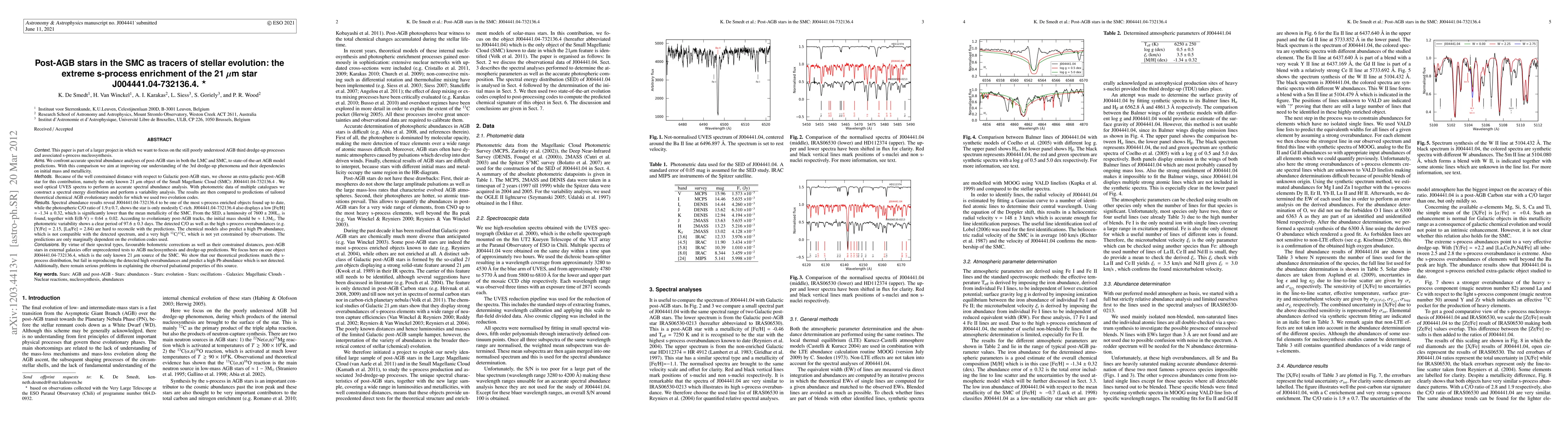 By virtue of their spectral types, favourable bolometric corrections as well as their constrained distances, post-AGB stars in external galaxies offer unprecedented tests to AGB nucleosynthesis and dredge-up predictions. We focus here on one object J004441.04-732136.4, which is the only known 21 micrometer source of the SMC. Spectral abundance results reveal J004441.04-732136.4 to be one of the most s-process enriched objects found up to date, while the photospheric C/O ratio of 1.9 +- 0.7, shows the star is only modestly C-rich. J004441.04-732136.4 also displays a low [Fe/H] = -1.34 +- 0.32, which is significantly lower than the mean metallicity of the SMC. From the SED, a luminosity of 7600 +- 200 solar luminosities is found, together with E(B-V) = 0.64 +- 0.02. According to evolutionary post-AGB tracks, the initial mass should be approximately 1.3 solar masses. The photometric variability shows a clear period of 97.6 +- 0.3 days. The detected C/O as well as the high s-process overabundances (e.g. [Y/Fe] = 2.15, [La/Fe] = 2.84) are hard to reconcile with the predictions. The chemical models also predict a high Pb abundance, which is not compatible with the detected spectrum, and a very high 12C/13C, which is not yet constrained by observations. The predictions are only marginally dependent on the evolution codes used. We show that our theoretical predictions match the s-process distribution, but fail in reproducing the detected high overabundances and predict a high Pb abundance which is not detected. Additionally, there remain serious problems in explaining the observed pulsational properties of this source.
