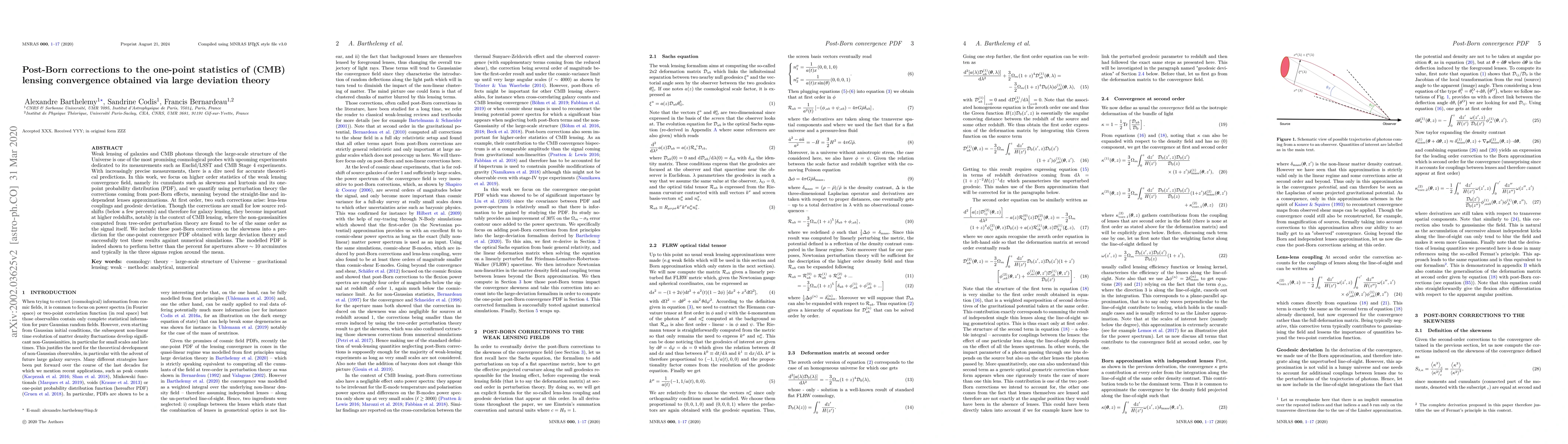 Weak lensing of galaxies and CMB photons through the large-scale structure of the Universe is one of the most promising cosmological probes with upcoming experiments dedicated to its measurements such as Euclid/LSST and CMB Stage 4 experiments. With increasingly precise measurements, there is a dire need for accurate theoretical predictions. In this work, we focus on higher order statistics of the weak lensing convergence field, namely its cumulants such as skewness and kurtosis and its one-point probability distribution (PDF), and we quantify using perturbation theory the corrections coming from post-Born effects, meaning beyond the straight-line and independent lenses approximations. At first order, two such corrections arise: lens-lens couplings and geodesic deviation. Though the corrections are small for low source redshifts (below a few percents) and therefore for galaxy lensing, they become important at higher redshifts, notably in the context of CMB lensing, where the non-gaussianities computed from tree-order perturbation theory are found to be of the same order as the signal itself. We include these post-Born corrections on the skewness into a prediction for the one-point convergence PDF obtained with large deviation theory and successfully test these results against numerical simulations. The modelled PDF is indeed shown to perform better than the percent for apertures above ~ 10 arcminutes and typically in the three sigmas region around the mean.