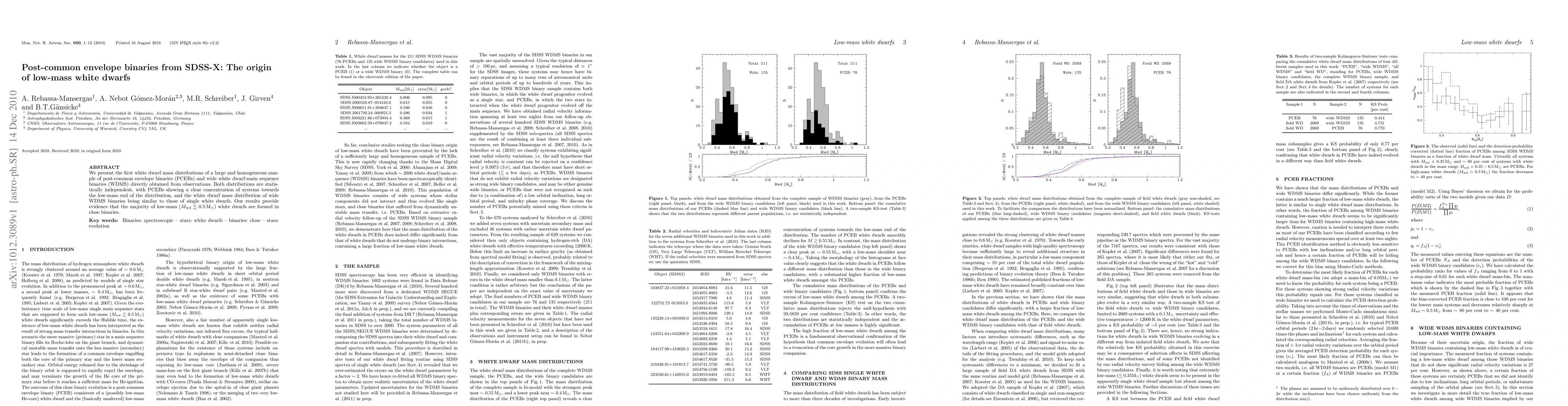 This study reveals the mass distributions of post-common envelope binaries (PCEBs) and wide white dwarf-main sequence binaries (WDMS) from SDSS-X, showing that low-mass white dwarfs predominantly originate from close binary systems. The findings suggest that the majority of low-mass white dwarfs (<0.5Msun) result from the evolution of such binary systems.