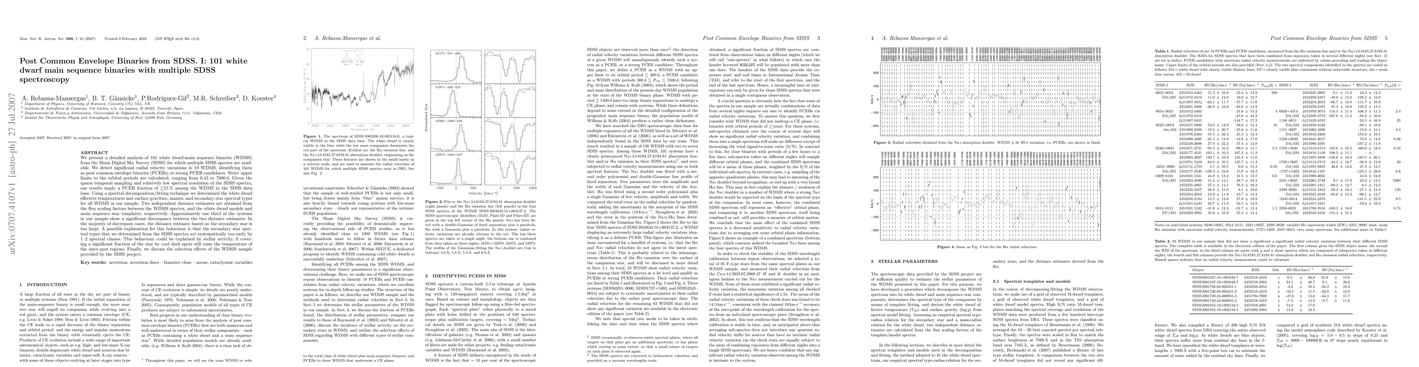 The research methodology involved a detailed analysis of 101 white dwarf-main sequence binaries (WDMS) from the Sloan Digital Sky Survey (SDSS) with multiple SDSS spectra, using spectral decomposition/fitting techniques to determine white dwarf effective temperatures, surface gravities, masses, secondary star spectral types, and independent distance estimates.