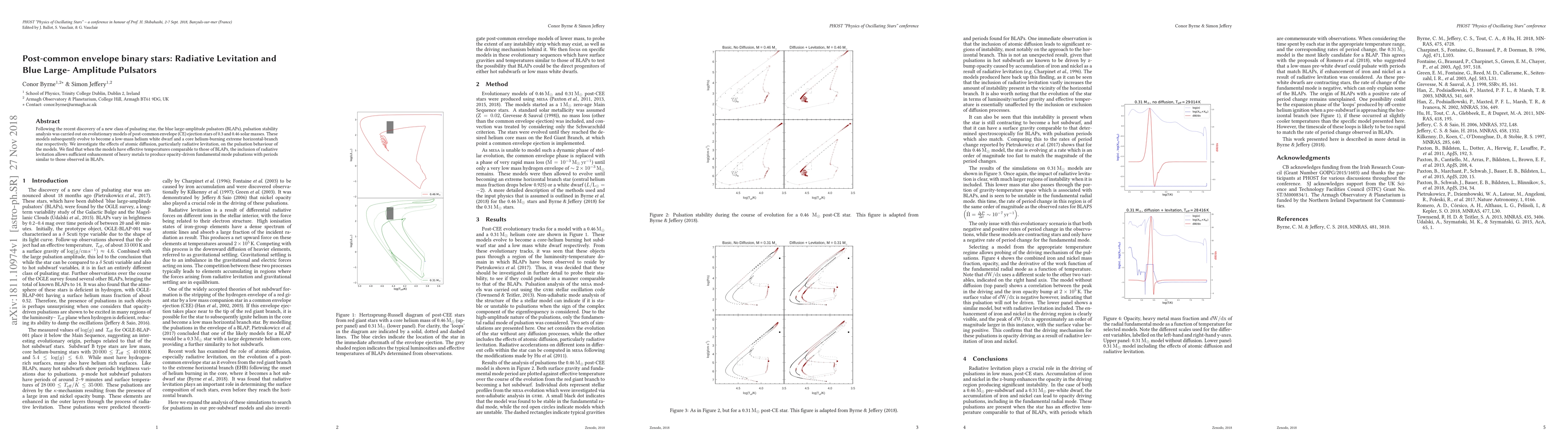 This paper investigates the pulsation behavior of post-common envelope binary stars, focusing on the effects of radiative levitation on blue large-amplitude pulsators (BLAPs). The study finds that radiative levitation enhances heavy metals to produce fundamental mode pulsations matching observed BLAPs.