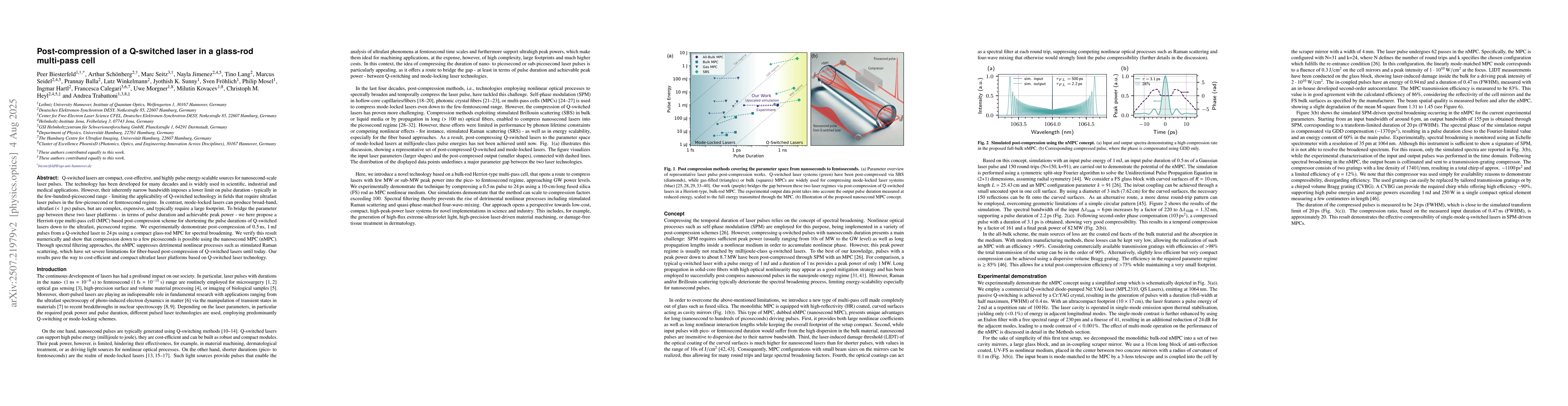 Q-switched lasers are compact, cost-effective, and highly pulse energy-scalable sources for nanosecond-scale laser pulses. The technology has been developed for many decades and is widely used in scientific, industrial and medical applications. However, their inherently narrow bandwidth imposes a lower limit on pulse duration - typically in the few-hundred-picosecond range - limiting the applicability of Q-switched technology in fields that require ultrafast laser pulses in the few-picosecond or femtosecond regime. In contrast, mode-locked lasers can produce broad-band, ultrafast (< 1 ps) pulses, but are complex, expensive, and typically require a large footprint. To bridge the parameter gap between these two laser platforms - in terms of pulse duration and achievable peak power - we here propose a Herriott-type multi-pass cell (MPC) based post-compression scheme for shortening the pulse durations of Q-switched lasers down to the ultrafast, picosecond regime. We experimentally demonstrate post-compression of 0.5 ns, 1 mJ pulses from a Q-switched laser to 24 ps using a compact glass-rod MPC for spectral broadening. We verify this result numerically and show that compression down to a few picoseconds is possible using the nanosecond MPC (nMPC).
