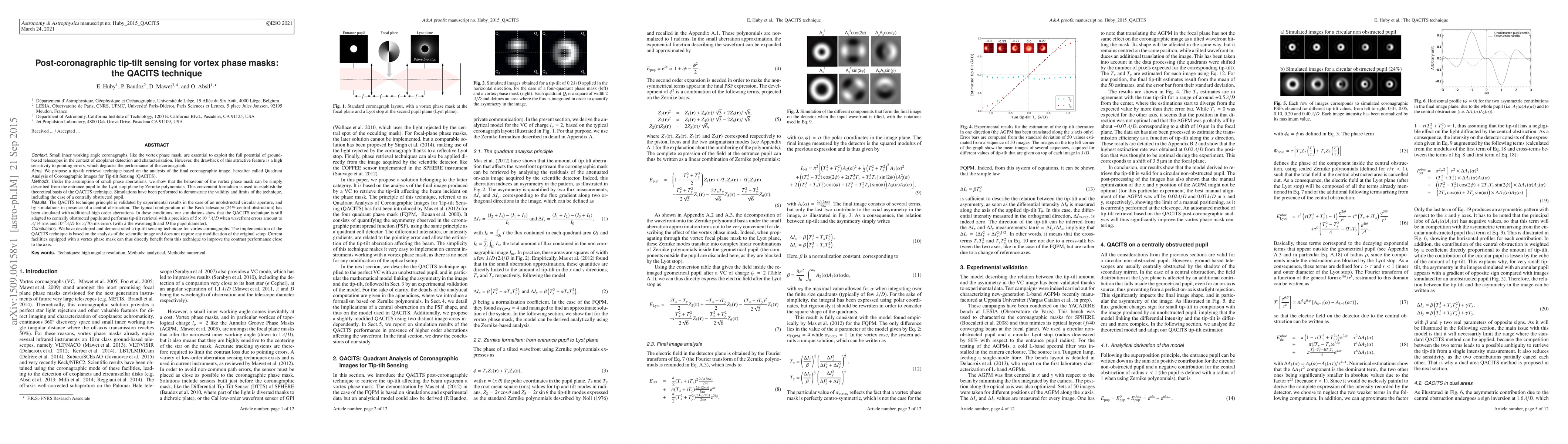 The paper proposes the QACITS technique for tip-tilt sensing in small inner working angle coronagraphs, specifically vortex phase masks, to enhance exoplanet detection. The technique analyzes the final coronagraphic image to retrieve tip-tilt errors, demonstrating its effectiveness through simulations and experiments, even under high-order aberrations.