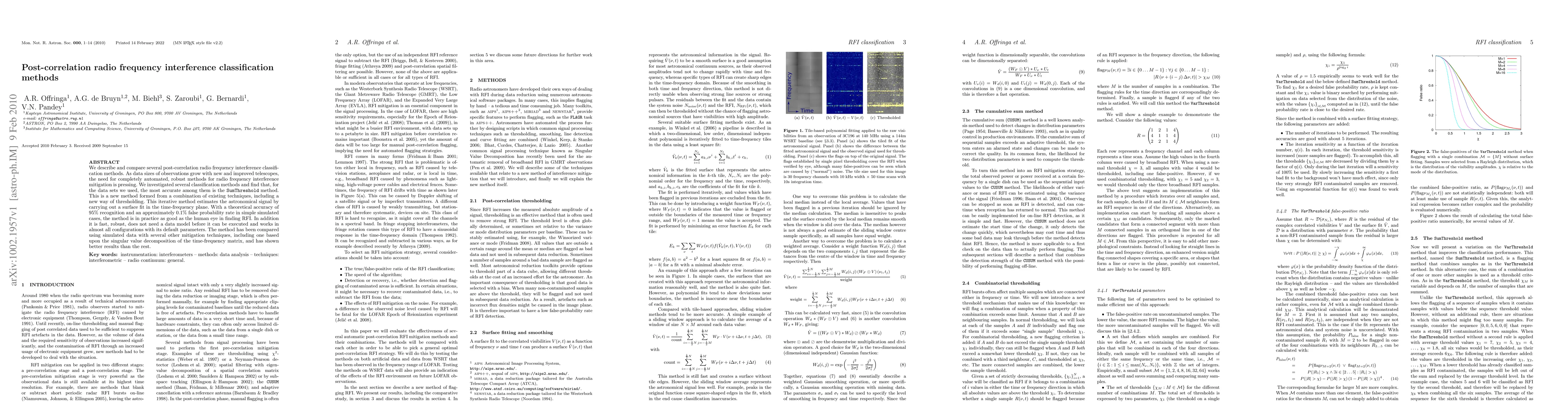 This paper explores various post-correlation methods for classifying radio frequency interference (RFI) and finds that the SumThreshold method, which combines existing techniques with a novel thresholding method, is the most accurate. It achieves a theoretical accuracy of 95% and performs nearly as well as human experts in identifying RFI.