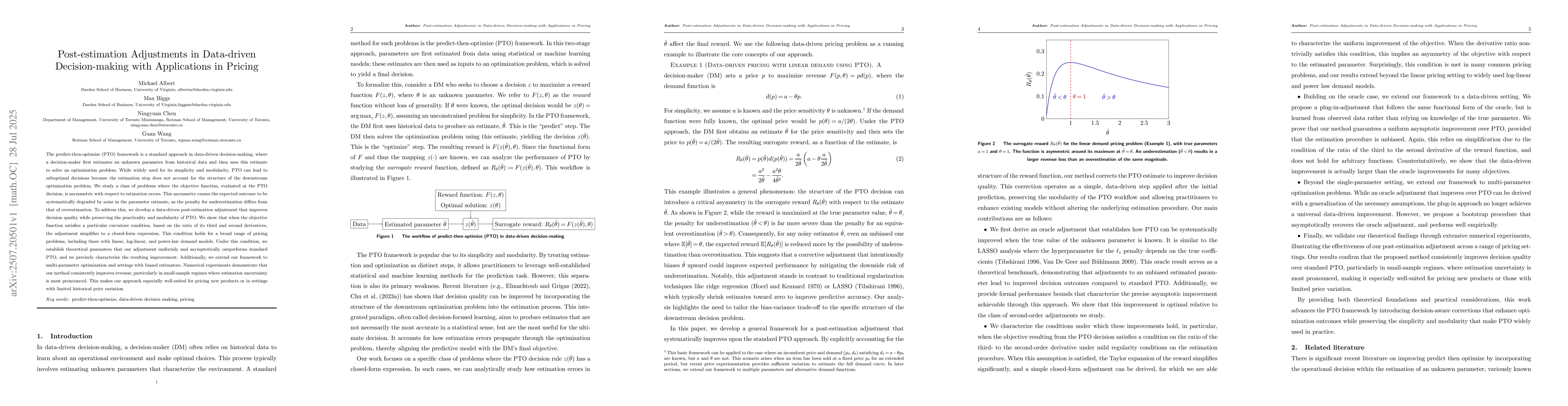 The predict-then-optimize (PTO) framework is a standard approach in data-driven decision-making, where a decision-maker first estimates an unknown parameter from historical data and then uses this estimate to solve an optimization problem. While widely used for its simplicity and modularity, PTO can lead to suboptimal decisions because the estimation step does not account for the structure of the downstream optimization problem. We study a class of problems where the objective function, evaluated at the PTO decision, is asymmetric with respect to estimation errors. This asymmetry causes the expected outcome to be systematically degraded by noise in the parameter estimate, as the penalty for underestimation differs from that of overestimation. To address this, we develop a data-driven post-estimation adjustment that improves decision quality while preserving the practicality and modularity of PTO. We show that when the objective function satisfies a particular curvature condition, based on the ratio of its third and second derivatives, the adjustment simplifies to a closed-form expression. This condition holds for a broad range of pricing problems, including those with linear, log-linear, and power-law demand models. Under this condition, we establish theoretical guarantees that our adjustment uniformly and asymptotically outperforms standard PTO, and we precisely characterize the resulting improvement. Additionally, we extend our framework to multi-parameter optimization and settings with biased estimators. Numerical experiments demonstrate that our method consistently improves revenue, particularly in small-sample regimes where estimation uncertainty is most pronounced. This makes our approach especially well-suited for pricing new products or in settings with limited historical price variation.