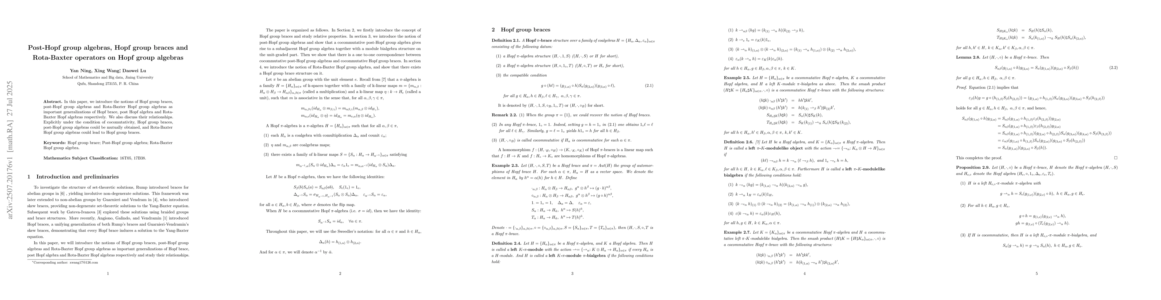 In this paper, we introduce the notions of Hopf group braces, post-Hopf group algebras and Rota-Baxter Hopf group algebras as important generalizations of Hopf brace, post Hopf algebra and Rota-Baxter Hopf algebras respectively. We also discuss their relationships. Explicitly under the condition of cocomutativity, Hopf group braces, post-Hopf group algebras could be mutually obtained, and Rota-Baxter Hopf group algebras could lead to Hopf group braces.
