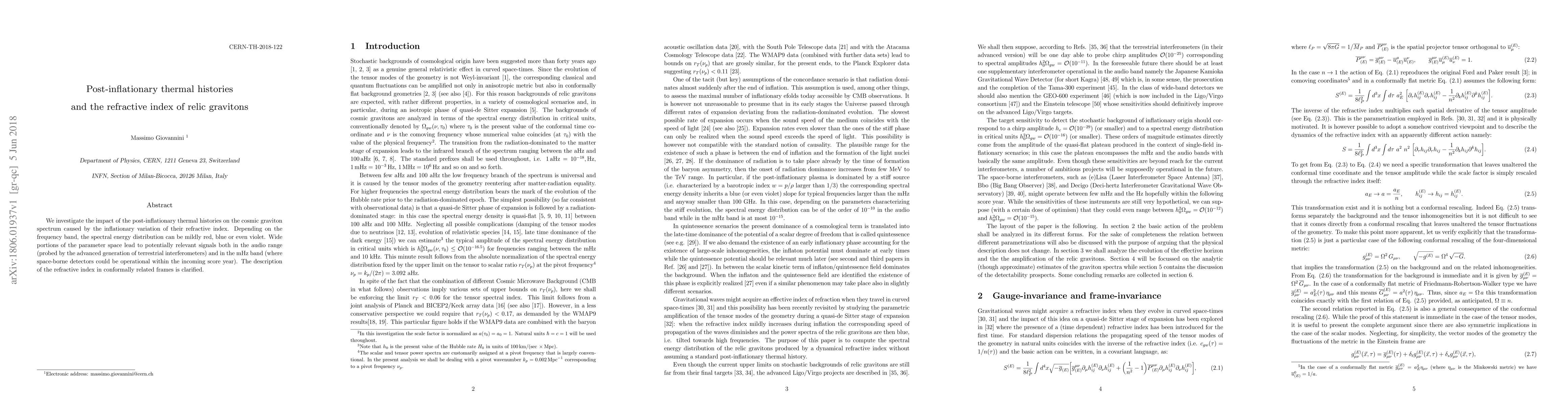 We investigate the impact of the post-inflationary thermal histories on the cosmic graviton spectrum caused by the inflationary variation of their refractive index. Depending on the frequency band, the spectral energy distribution can be mildly red, blue or even violet. Wide portions of the parameter space lead to potentially relevant signals both in the audio range (probed by the advanced generation of terrestrial interferometers) and in the mHz band (where space-borne detectors could be operational within the incoming score year). The description of the refractive index in conformally related frames is clarified.