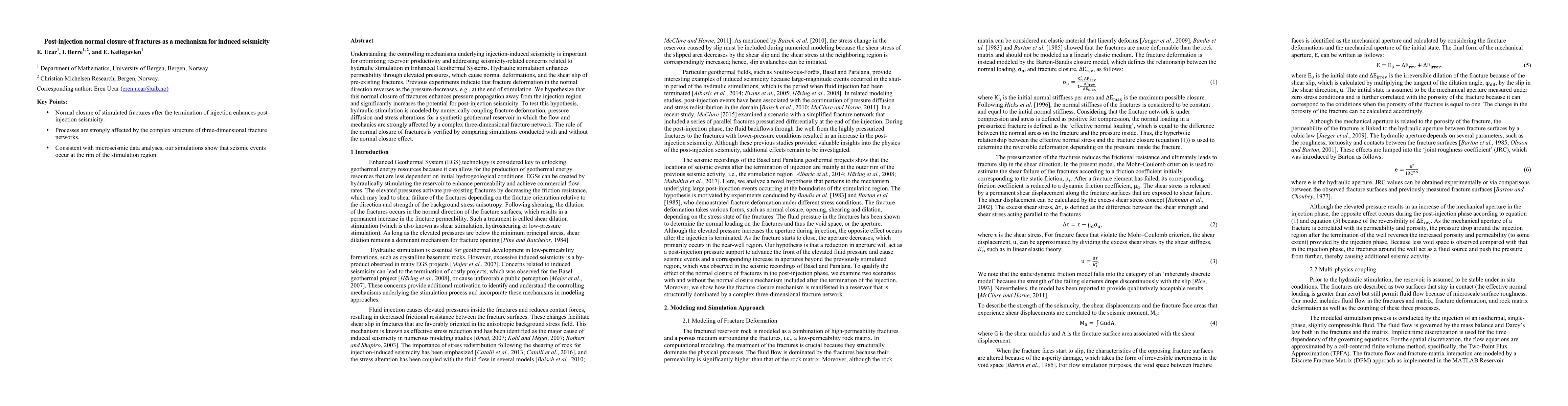 This paper investigates the role of post-injection normal closure of fractures in inducing seismicity during hydraulic stimulation in Enhanced Geothermal Systems. Numerical simulations show that the normal closure of fractures enhances pressure propagation and increases the potential for post-injection seismicity, highlighting its importance in understanding and managing induced seismicity.