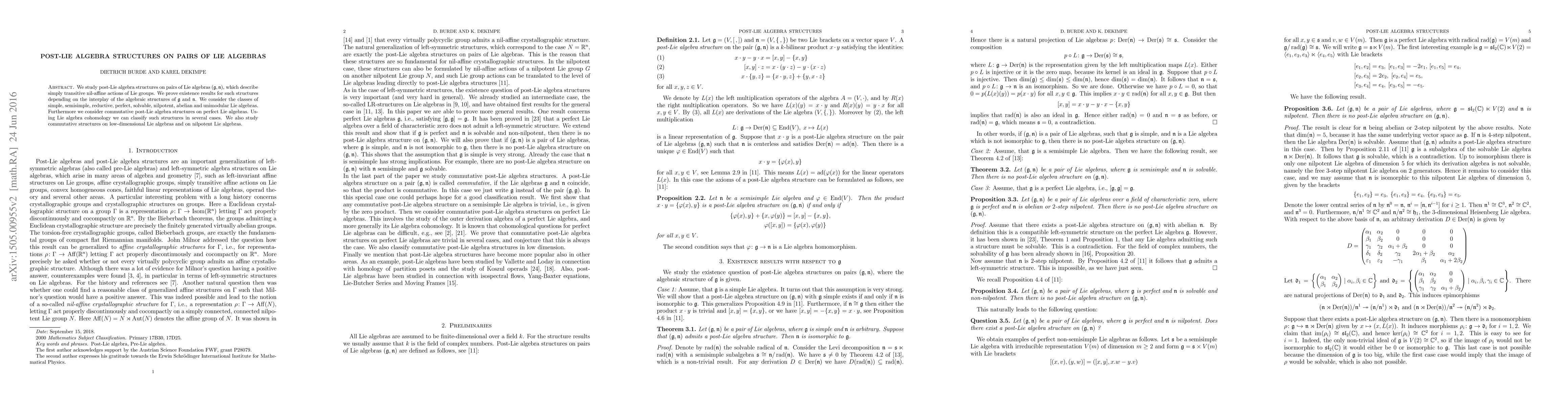 The research extends previous work on post-Lie algebras by examining structures on pairs of Lie algebras, providing new existence theorems and classification results, particularly for commutative structures on perfect Lie algebras, which are proven to be trivial.