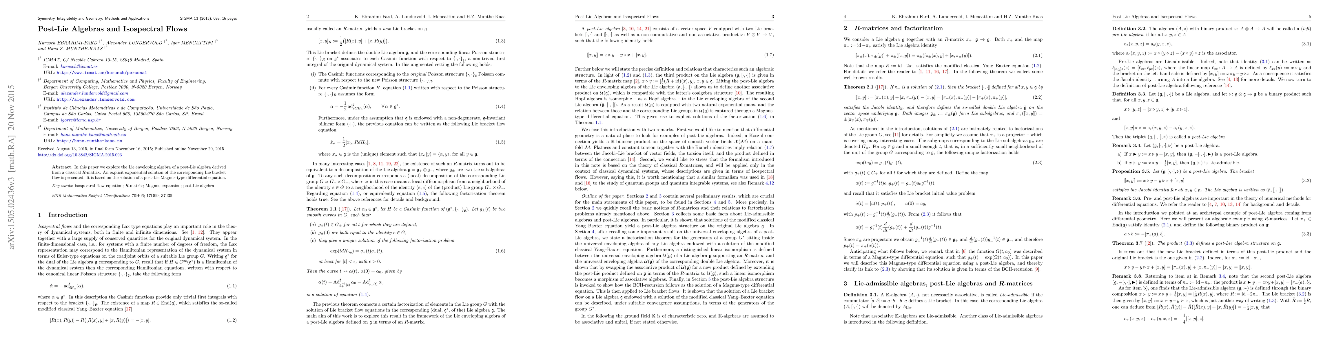 In this paper we explore the Lie enveloping algebra of a post-Lie algebra derived from a classical $R$-matrix. An explicit exponential solution of the corresponding Lie bracket flow is presented. It is based on the solution of a post-Lie Magnus-type differential equation.