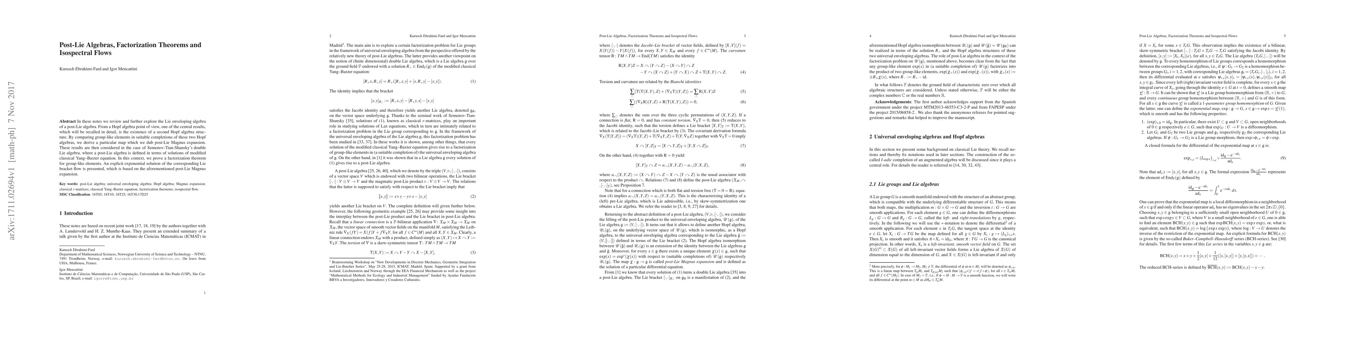 In these notes we review and further explore the Lie enveloping algebra of a post-Lie algebra. From a Hopf algebra point of view, one of the central results, which will be recalled in detail, is the existence of a second Hopf algebra structure. By comparing group-like elements in suitable completions of these two Hopf algebras, we derive a particular map which we dub post-Lie Magnus expansion. These results are then considered in the case of Semenov-Tian-Shansky's double Lie algebra, where a post-Lie algebra is defined in terms of solutions of modified classical Yang-Baxter equation. In this context, we prove a factorization theorem for group-like elements. An explicit exponential solution of the corresponding Lie bracket flow is presented, which is based on the aforementioned post-Lie Magnus expansion.