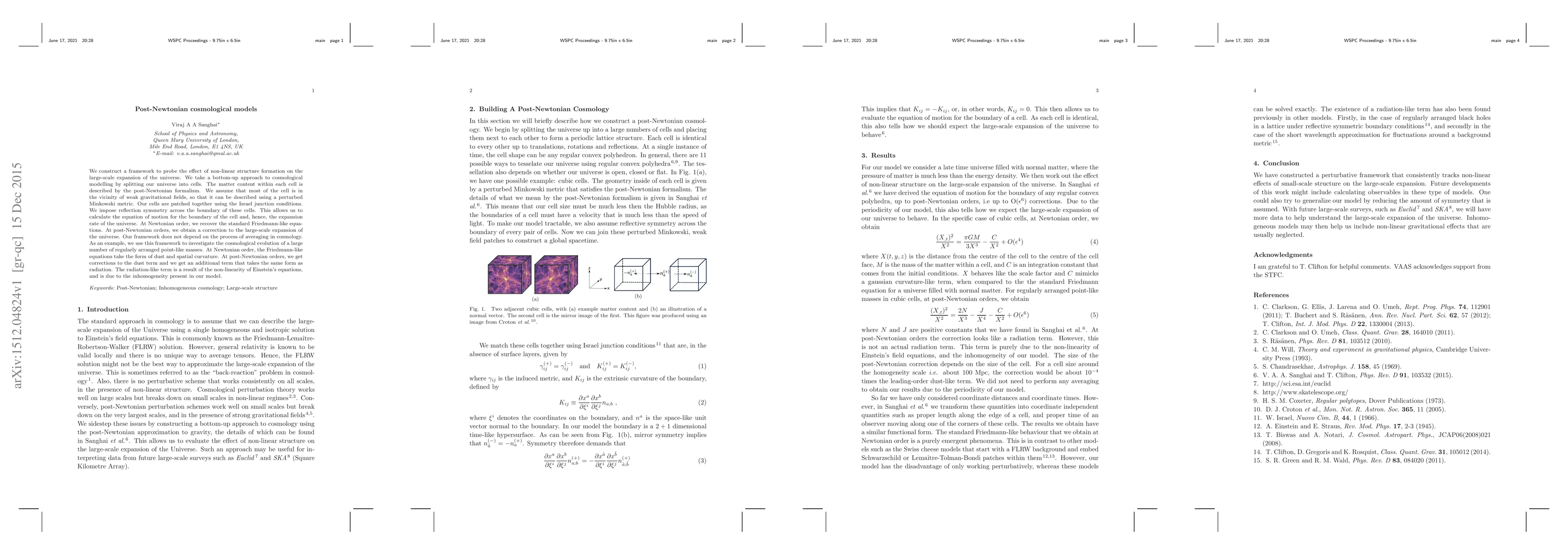 This paper develops a post-Newtonian framework to study the effect of non-linear structure formation on the universe's large-scale expansion, using a bottom-up approach with cells described by the post-Newtonian formalism and patched together with Israel junction conditions. The model reveals corrections to the expansion rate at post-Newtonian orders, including a radiation-like term due to inhomogeneity.