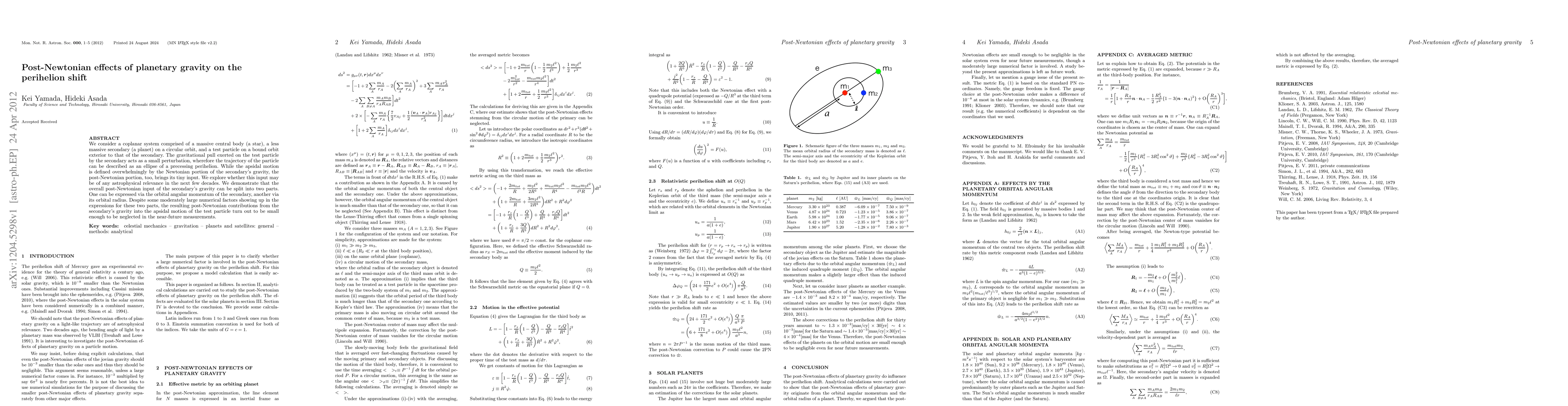 This study investigates the effects of planetary gravity on a test particle's orbit around a star, finding that post-Newtonian effects are small and can be neglected in near-future measurements.