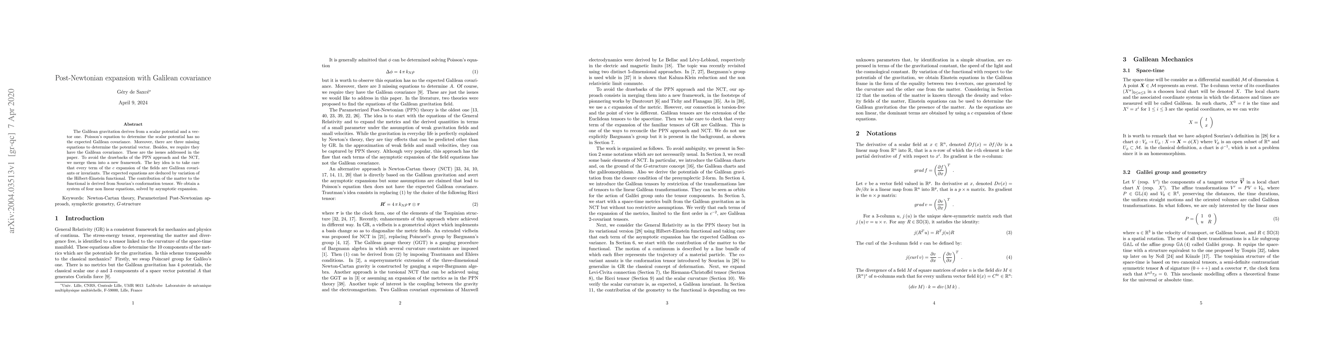 Researchers developed a new framework to resolve issues with Galilean covariance in post-Newtonian expansion of gravitation, merging PPN and NCT approaches into a single system of four non-linear equations.