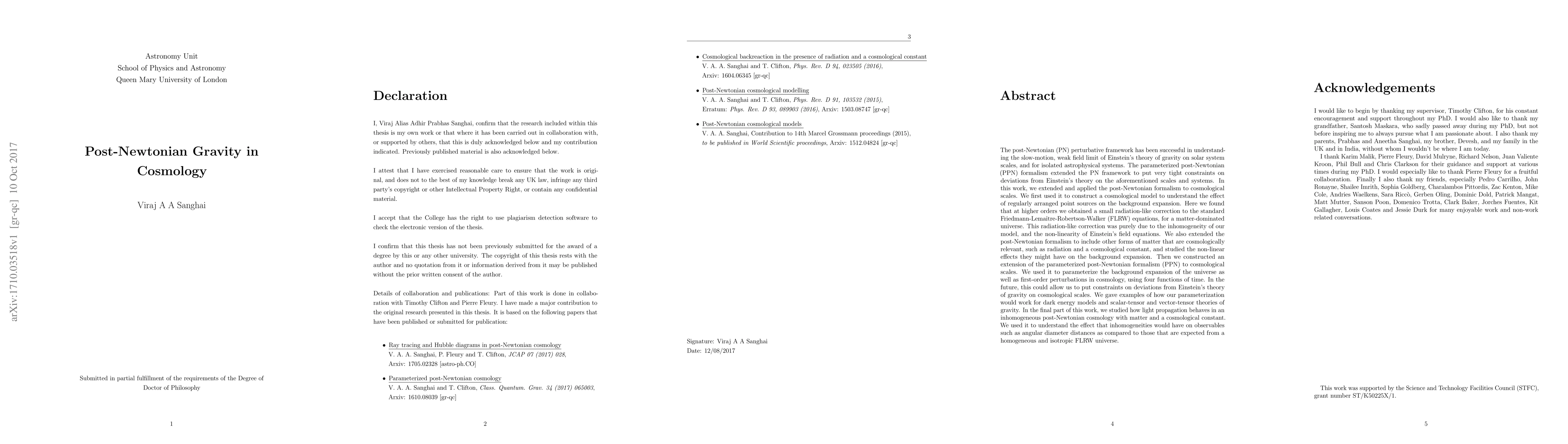 The paper presents a new form of the post-Newtonian formalism extended to cosmological scales, including an extension of the PPN formalism to cosmological scales and a detailed analysis of light propagation in inhomogeneous post-Newtonian cosmologies.