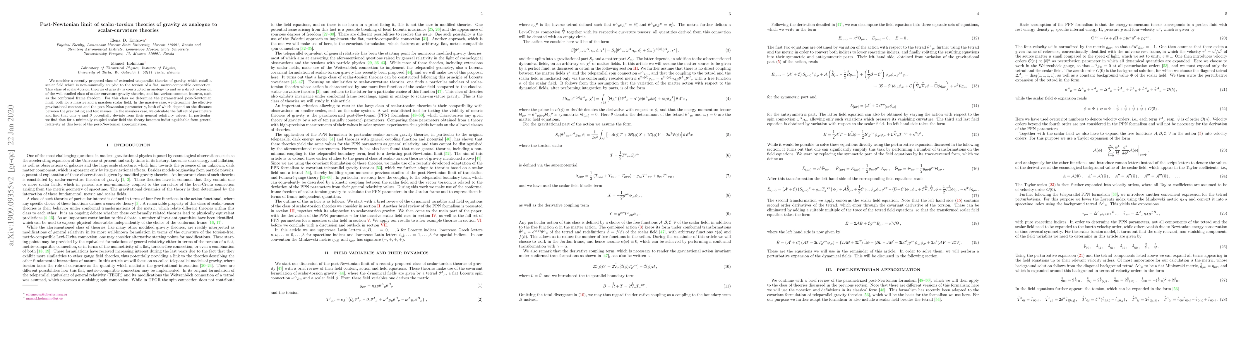 This paper explores extended teleparallel theories of gravity featuring a scalar field non-minimally coupled to torsion, analogously extending scalar-curvature theories. It determines the parametrized post-Newtonian limit, finding that for a massive scalar field, both the effective gravitational constant and the post-Newtonian parameter $\gamma$ vary with distance, while for a massless field, only $\gamma$ and $\beta$ may deviate from general relativity values.