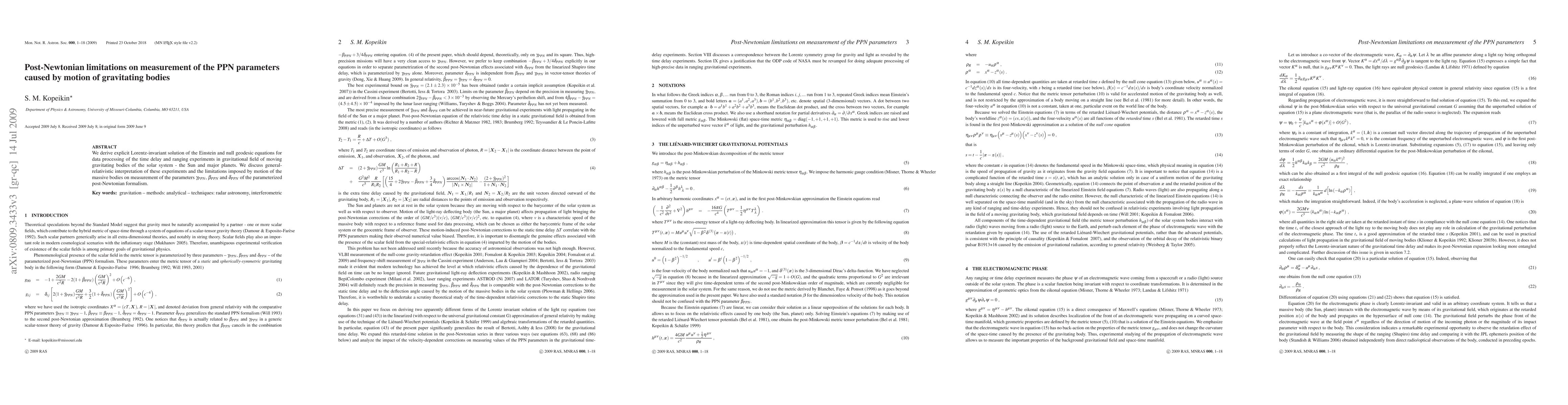 This paper derives a Lorentz-invariant solution for time delay and ranging experiments in the gravitational fields of moving solar system bodies, discussing the general-relativistic constraints on measuring the PPN parameters gamma, beta, and delta due to the motion of the massive bodies.