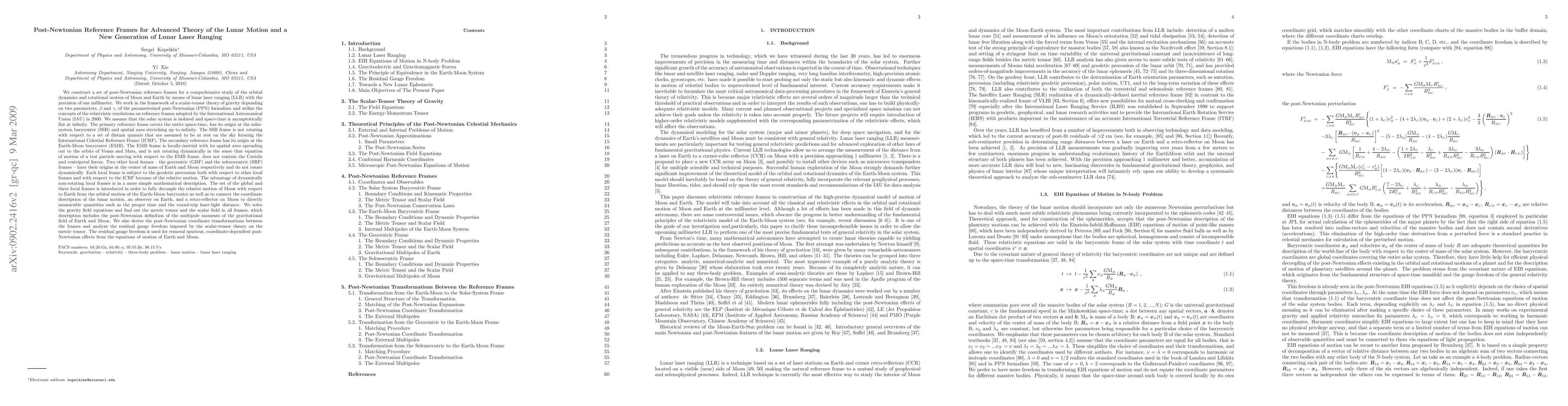 This paper develops post-Newtonian reference frames and coordinate transformations for precise lunar laser ranging, aiming to enhance the study of lunar and Earth dynamics with millimeter accuracy, while addressing residual gauge freedom to eliminate spurious effects.
