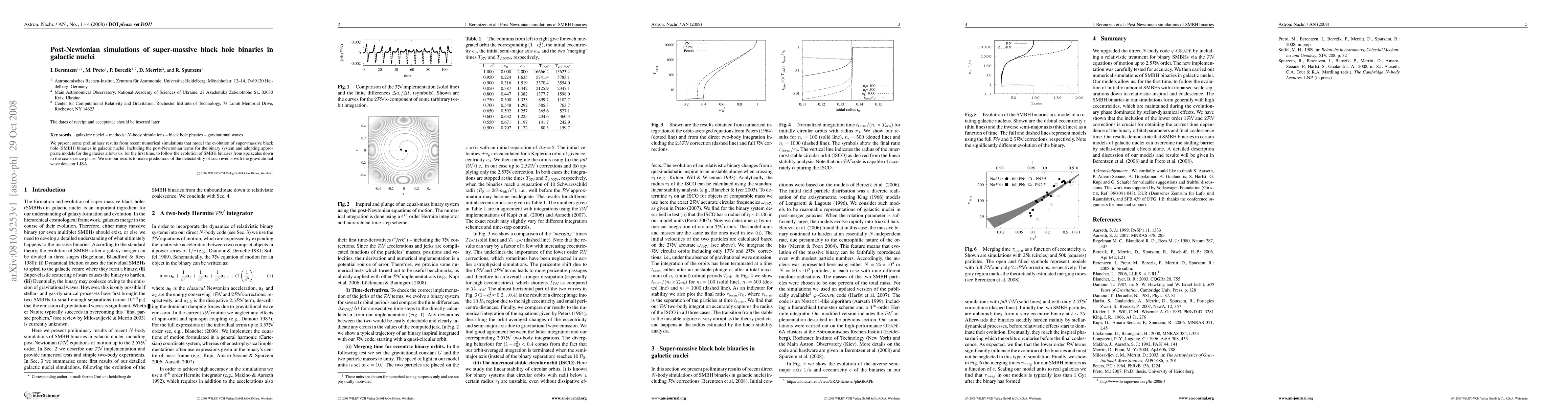 This paper presents preliminary results from numerical simulations modeling the evolution of super-massive black hole binaries, incorporating post-Newtonian terms and galactic models to track their development from kpc scales to coalescence. The study also predicts the detectability of these events by the LISA gravitational wave detector.