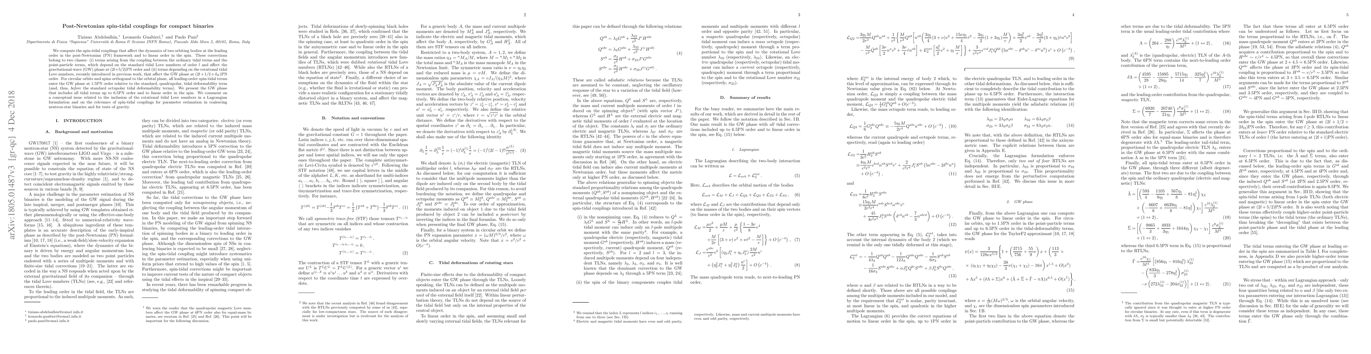 This paper computes leading-order spin-tidal couplings in post-Newtonian frameworks, identifying two classes of terms affecting gravitational-wave phase at various PN orders. The study highlights the significance of these couplings for parameter estimation in neutron-star binaries and tests of gravity.