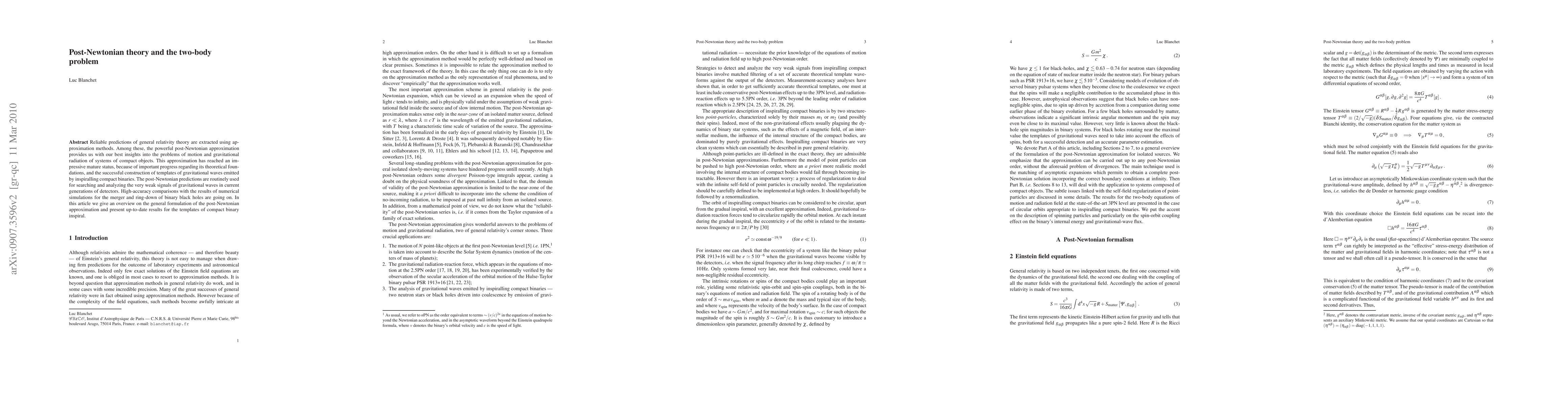 The post-Newtonian theory provides accurate predictions for general relativity, especially for compact object motion and gravitational radiation, and is widely used in detecting gravitational waves.