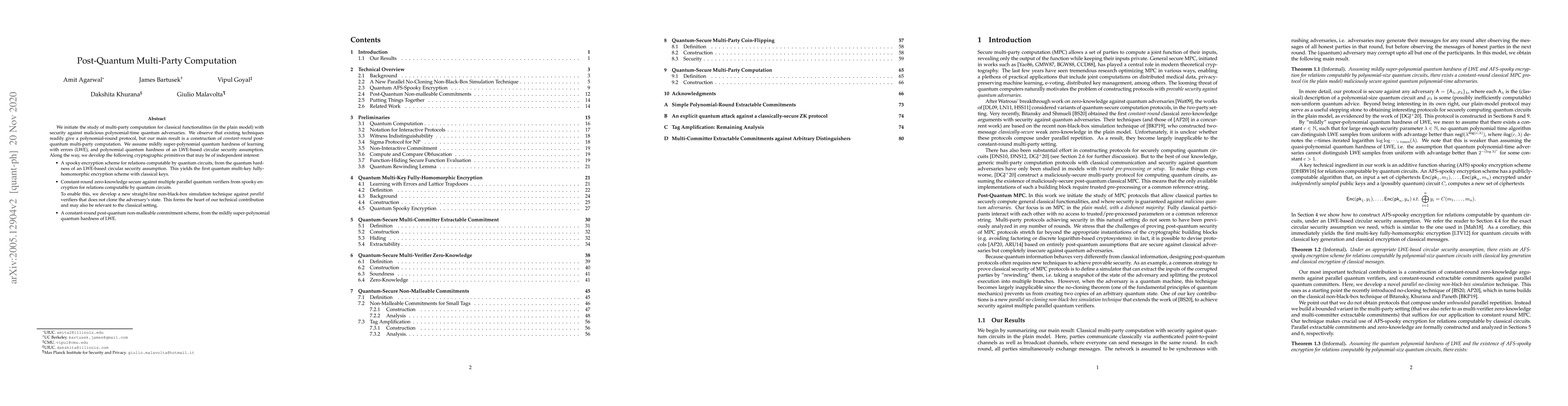 This paper constructs a constant-round post-quantum multi-party computation protocol secure against malicious quantum adversaries, assuming quantum hardness of LWE. It also introduces several cryptographic primitives, including a quantum multi-key fully-homomorphic encryption scheme, a constant-round zero-knowledge protocol, and a non-malleable commitment scheme.