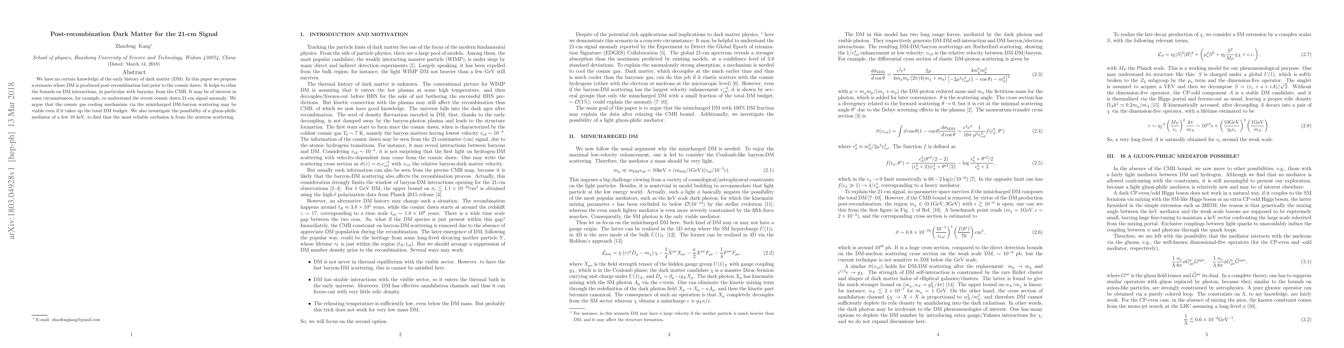 Researchers propose a new scenario for dark matter production post-recombination, which could help explain the recent cosmic dawn 21-cm signal anomaly and relax bounds on DM interactions with baryons.