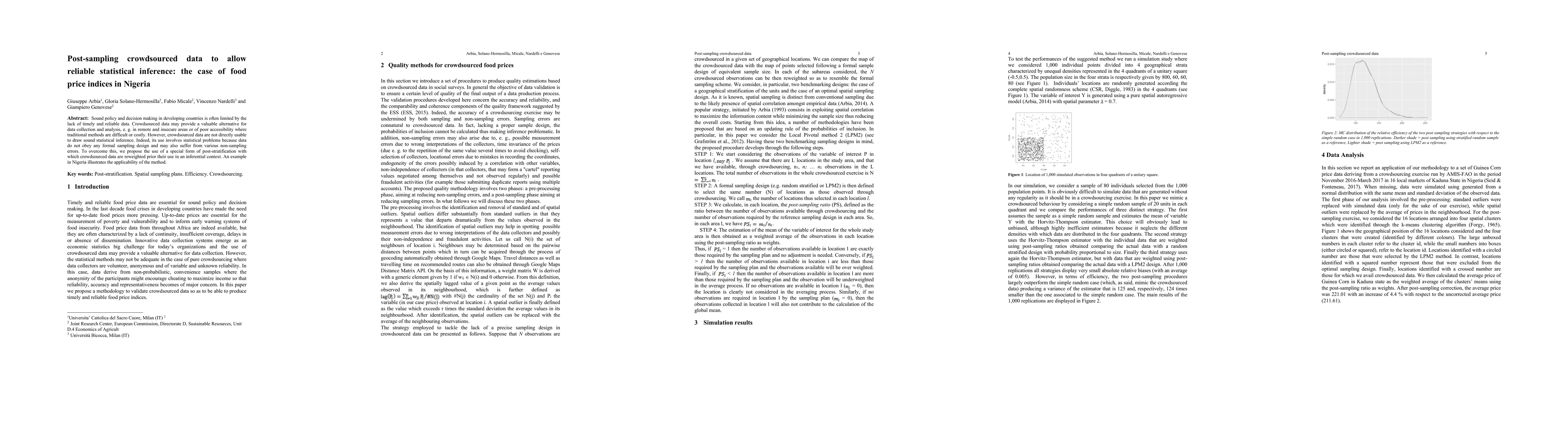 This paper proposes a method to reweight crowdsourced data for reliable statistical inference, addressing the lack of timely and reliable data in developing countries. By using post-stratification, the authors demonstrate how crowdsourced data can be adjusted to overcome statistical issues, illustrated through an example of food price indices in Nigeria.