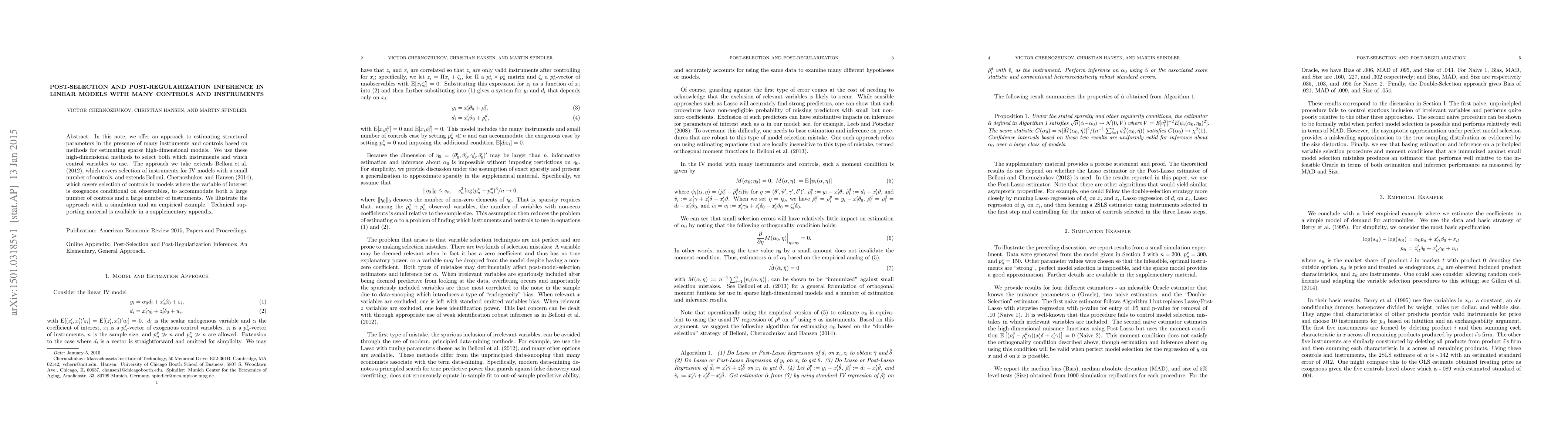 In this note, we offer an approach to estimating causal/structural parameters in the presence of many instruments and controls based on methods for estimating sparse high-dimensional models. We use these high-dimensional methods to select both which instruments and which control variables to use. The approach we take extends BCCH2012, which covers selection of instruments for IV models with a small number of controls, and extends BCH2014, which covers selection of controls in models where the variable of interest is exogenous conditional on observables, to accommodate both a large number of controls and a large number of instruments. We illustrate the approach with a simulation and an empirical example. Technical supporting material is available in a supplementary online appendix.