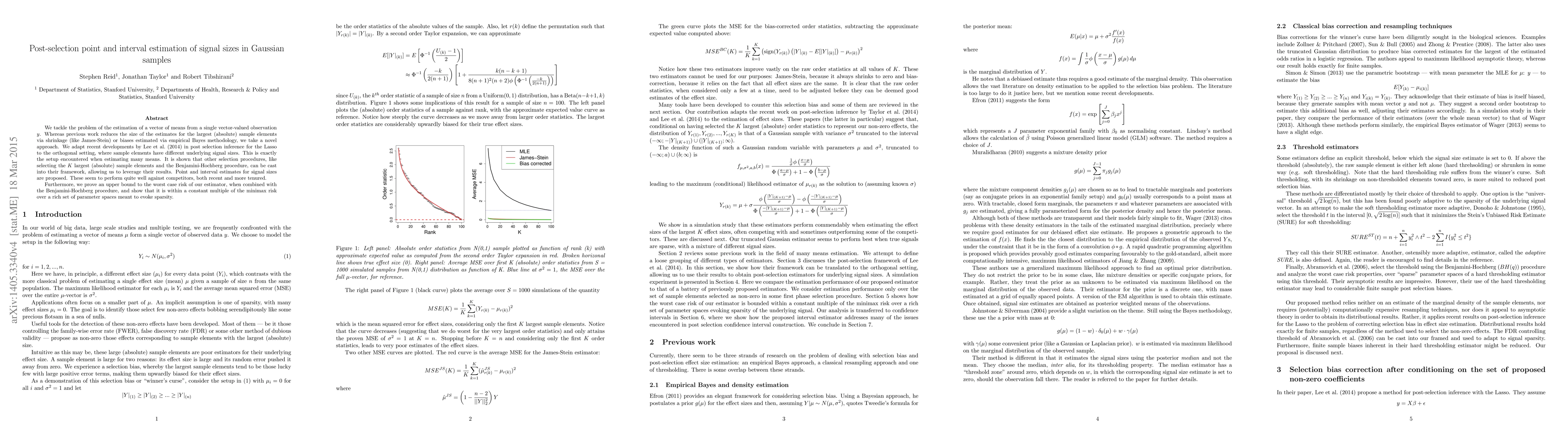 We tackle the problem of the estimation of a vector of means from a single vector-valued observation $y$. Whereas previous work reduces the size of the estimates for the largest (absolute) sample elements via shrinkage (like James-Stein) or biases estimated via empirical Bayes methodology, we take a novel approach. We adapt recent developments by Lee et al (2013) in post selection inference for the Lasso to the orthogonal setting, where sample elements have different underlying signal sizes. This is exactly the setup encountered when estimating many means. It is shown that other selection procedures, like selecting the $K$ largest (absolute) sample elements and the Benjamini-Hochberg procedure, can be cast into their framework, allowing us to leverage their results. Point and interval estimates for signal sizes are proposed. These seem to perform quite well against competitors, both recent and more tenured. Furthermore, we prove an upper bound to the worst case risk of our estimator, when combined with the Benjamini-Hochberg procedure, and show that it is within a constant multiple of the minimax risk over a rich set of parameter spaces meant to evoke sparsity.