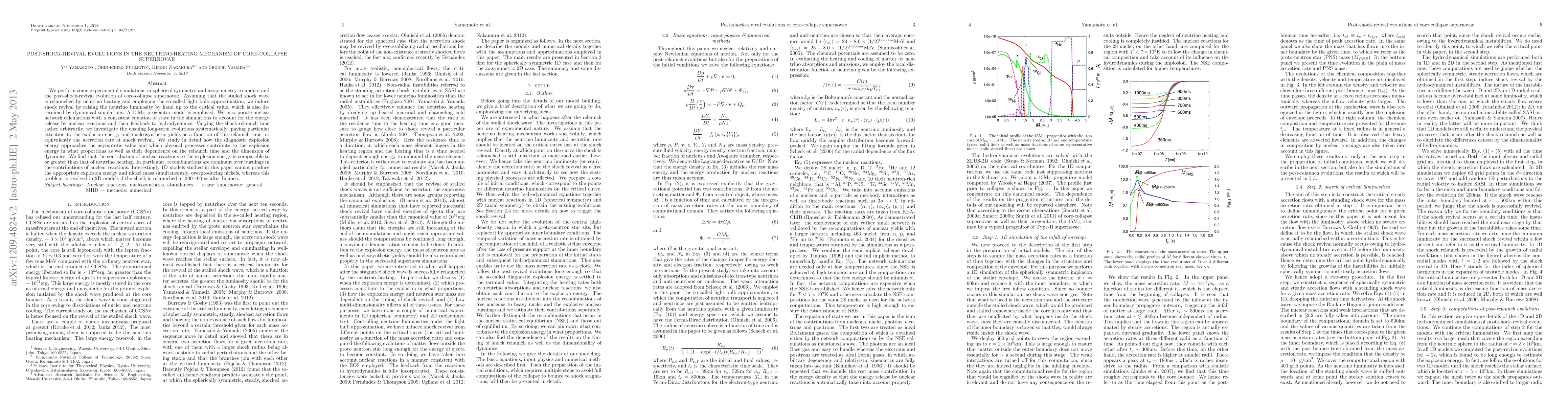 This paper investigates the post-shock-revival evolution in core-collapse supernovae using simulations, focusing on the role of neutrino heating and nuclear reactions. It finds that nuclear reactions significantly contribute to explosion energy, with recombinations being more influential than burnings, and that 2D models better resolve the explosion energy and nickel mass compared to 1D models.