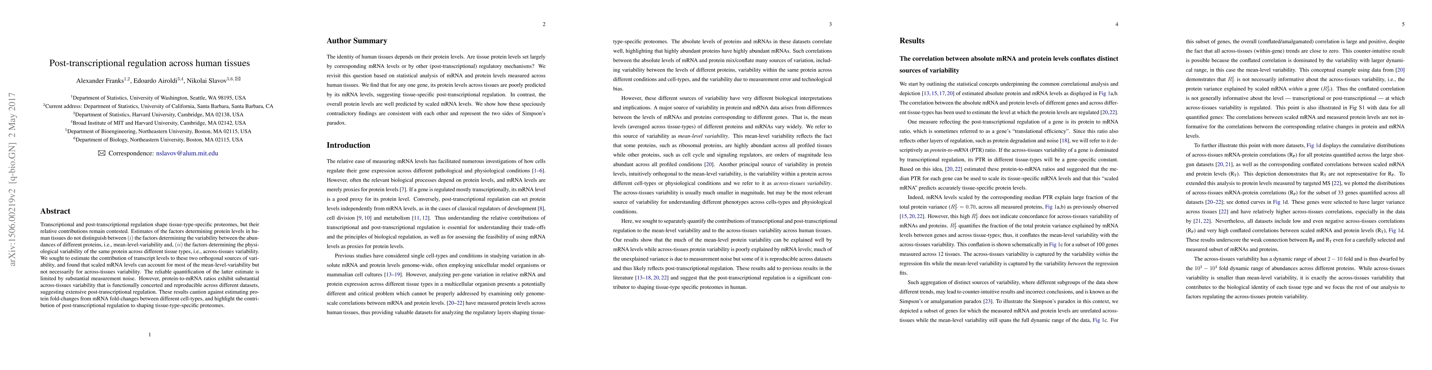 This study estimates the contributions of mRNA levels to protein abundance variability across human tissues, finding that while mRNA levels account for most mean-level variability, they do not explain the substantial and functionally significant across-tissues variability in protein-to-mRNA ratios, indicating significant post-transcriptional regulation.