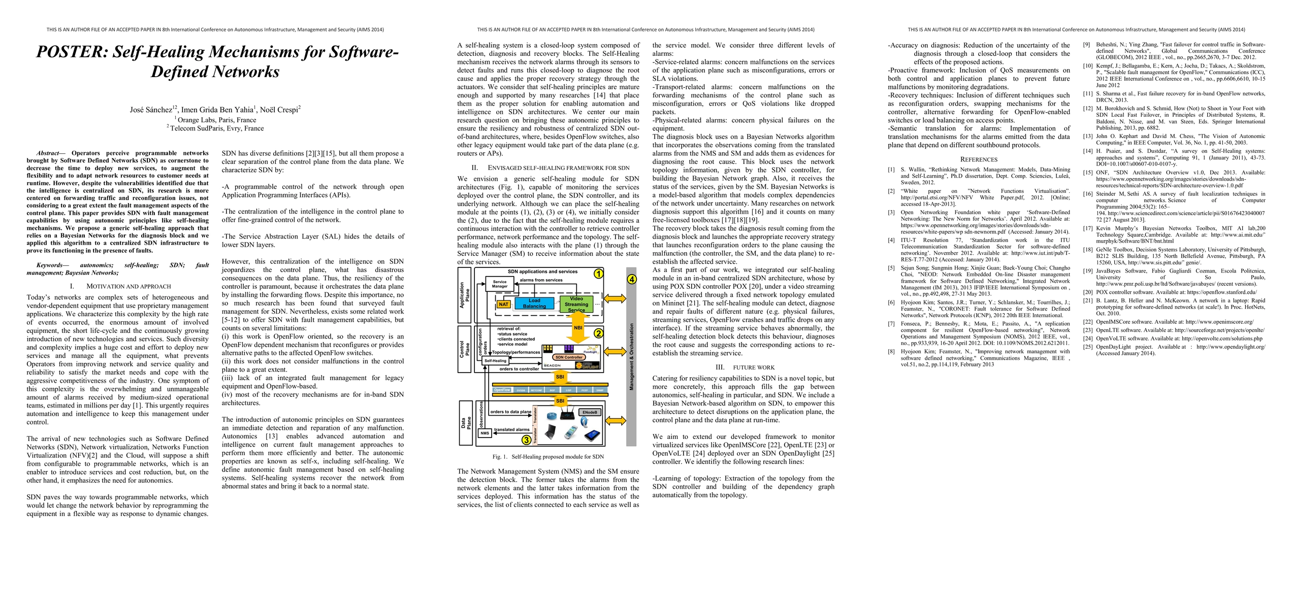 This paper introduces self-healing mechanisms for Software Defined Networks (SDN) to address fault management, using Bayesian Networks for diagnosis. The proposed approach aims to enhance fault management in centralized SDN infrastructures, thereby improving network resilience and adaptability.