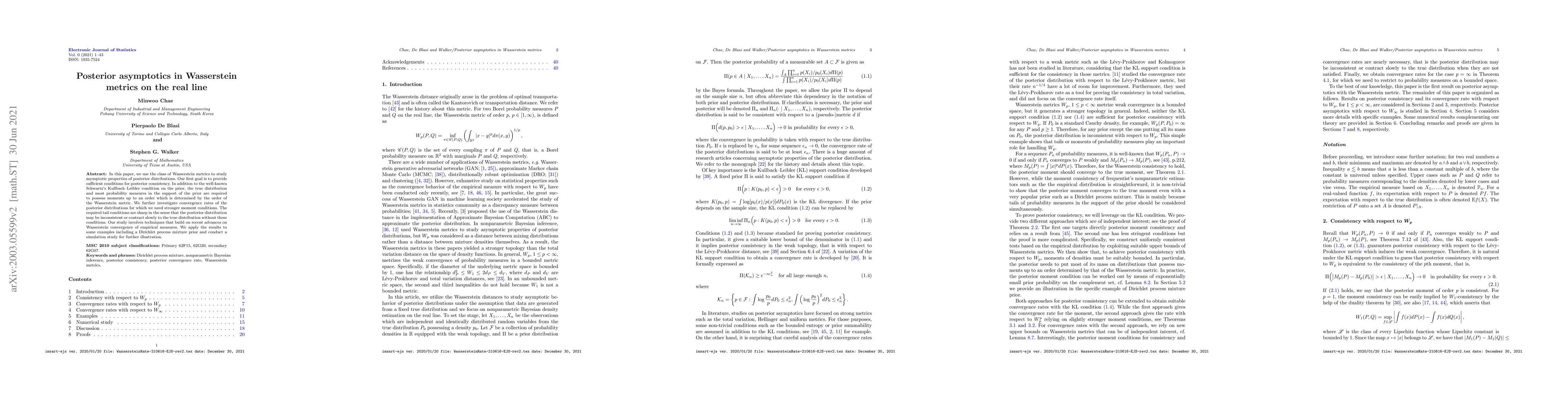 This paper explores the asymptotic properties of posterior distributions using Wasserstein metrics, requiring strong moment conditions for consistency and convergence rates, with implications for density estimation and prior choice in Bayesian inference.