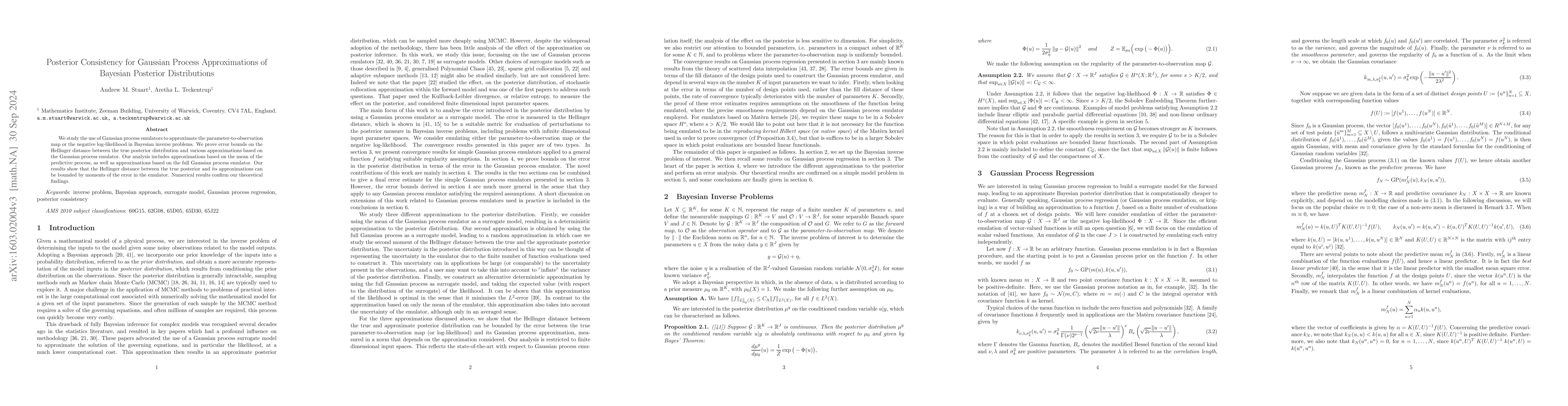 This paper investigates the use of Gaussian process emulators for approximating Bayesian posterior distributions in inverse problems, proving error bounds on the Hellinger distance between true and approximated distributions. The study confirms theoretical results with numerical validation.