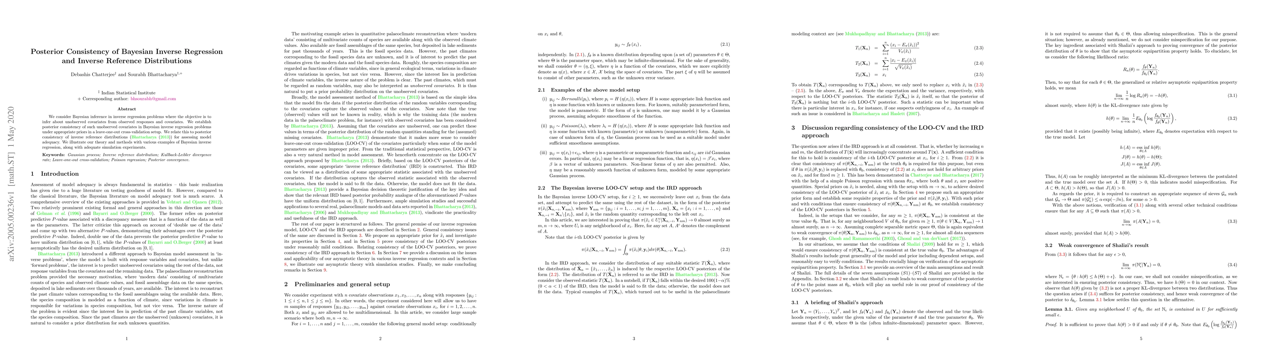 This paper establishes the posterior consistency of Bayesian inverse regression for inferring unobserved covariates from observed data under appropriate priors. It also connects this consistency to the adequacy assessment of inverse reference distributions, supported by simulation experiments and examples.
