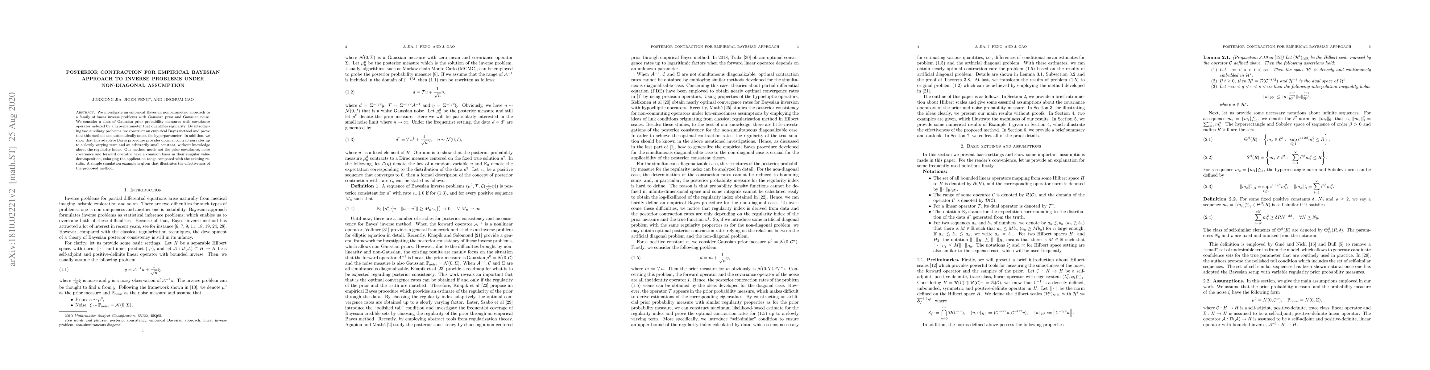 The Bayesian approach to inverse problems is used, with a focus on posterior contraction rates.