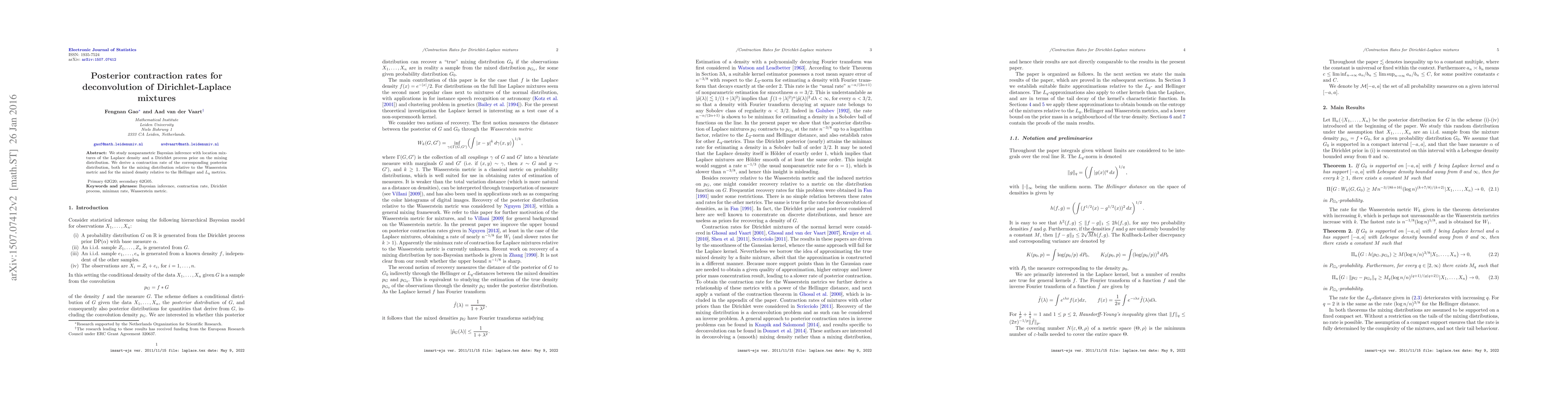 This paper investigates nonparametric Bayesian inference for location mixtures of Laplace densities with a Dirichlet process prior. It derives contraction rates for the posterior distribution of the mixing distribution and the mixed density under various metrics.