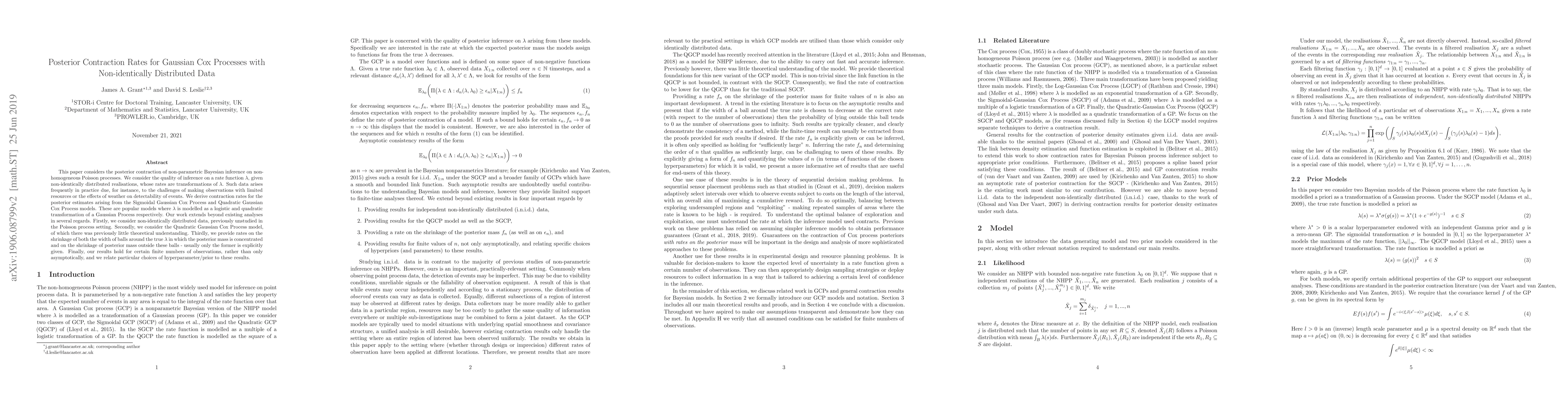This paper investigates posterior contraction rates for non-parametric Bayesian inference on Gaussian Cox processes with non-identically distributed data. It derives contraction rates for posterior estimates from Sigmoidal and Quadratic Gaussian Cox Process models, extending existing analyses to cover non-identically distributed data and providing new theoretical insights into the Quadratic Gaussian Cox Process.