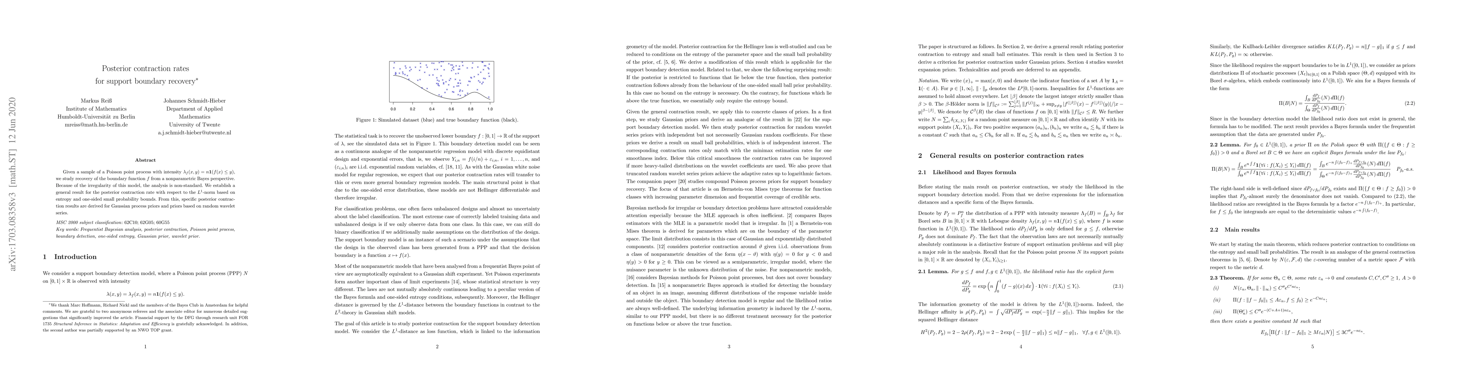 This paper investigates the recovery of a boundary function from a Poisson point process using a nonparametric Bayesian approach, focusing on posterior contraction rates. It establishes a general result for the posterior contraction rate in $L^1$-norm, and applies this to Gaussian process priors and random wavelet series priors.
