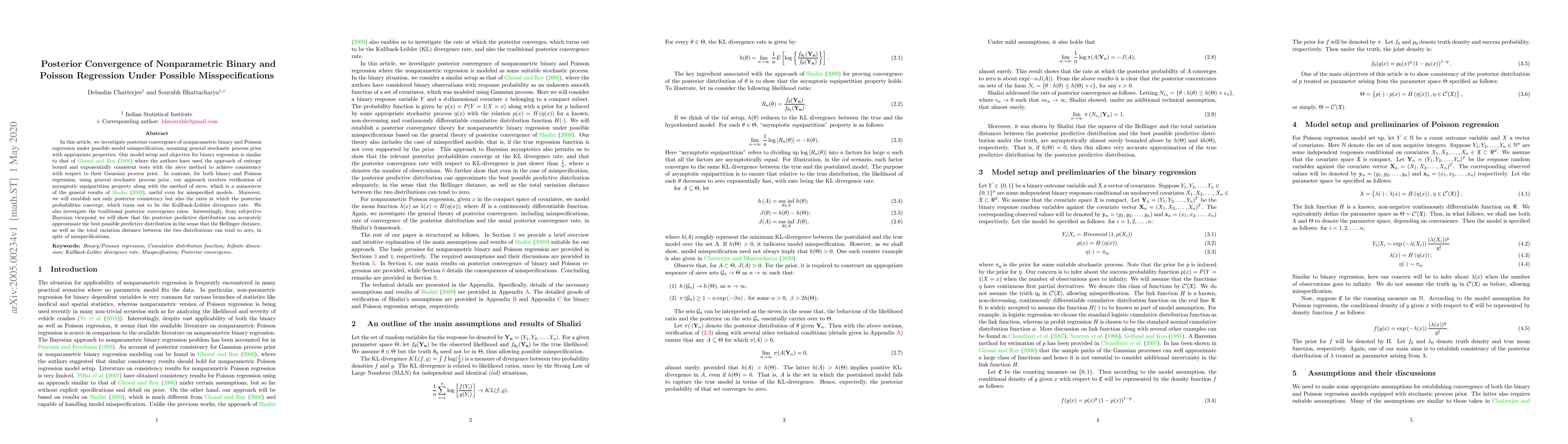 In this article, we investigate posterior convergence of nonparametric binary and Poisson regression under possible model misspecification, assuming general stochastic process prior with appropriate properties. Our model setup and objective for binary regression is similar to that of Ghosal and Roy (2006) where the authors have used the approach of entropy bound and exponentially consistent tests with the sieve method to achieve consistency with respect to their Gaussian process prior. In contrast, for both binary and Poisson regression, using general stochastic process prior, our approach involves verification of asymptotic equipartition property along with the method of sieve, which is a manoeuvre of the general results of Shalizi (2009), useful even for misspecified models. Moreover, we will establish not only posterior consistency but also the rates at which the posterior probabilities converge, which turns out to be the Kullback-Leibler divergence rate. We also investgate the traditional posterior convergence rates. Interestingly, from subjective Bayesian viewpoint we will show that the posterior predictive distribution can accurately approximate the best possible predictive distribution in the sense that the Hellinger distance, as well as the total variation distance between the two distributions can tend to zero, in spite of misspecifications.