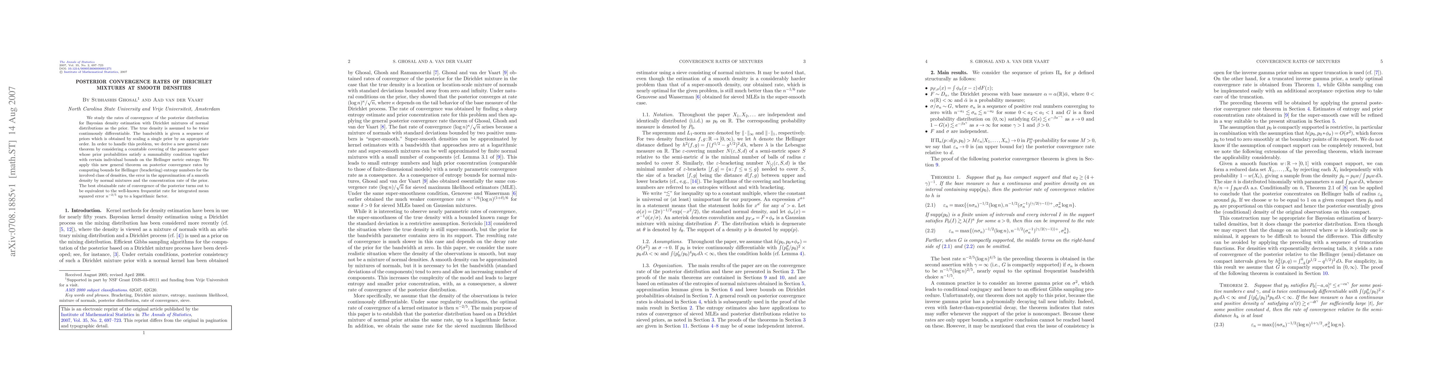 The paper derives a new general rate theorem for the posterior distribution of Bayesian density estimation using Dirichlet mixtures of normal distributions. This is achieved by considering a countable covering of the parameter space with prior probabilities satisfying summability conditions and individual bounds on the Hellinger metric entropy.