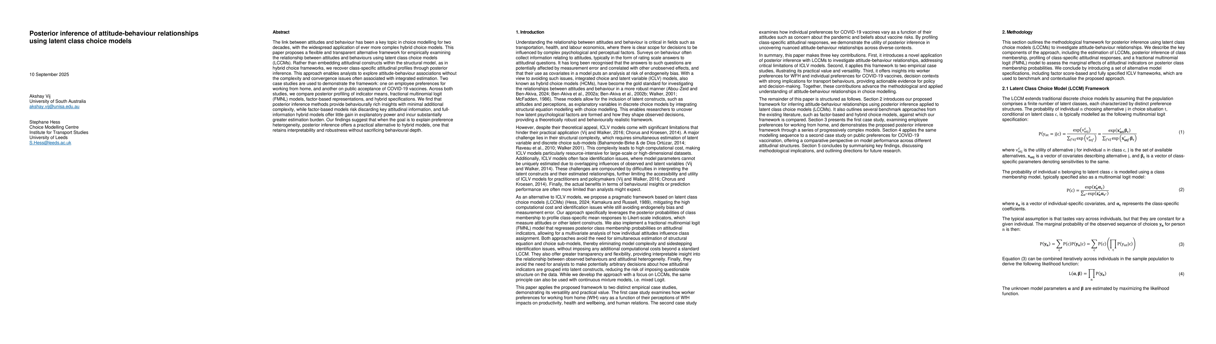 The link between attitudes and behaviour has been a key topic in choice modelling for two decades, with the widespread application of ever more complex hybrid choice models. This paper proposes a flexible and transparent alternative framework for empirically examining the relationship between attitudes and behaviours using latent class choice models (LCCMs). Rather than embedding attitudinal constructs within the structural model, as in hybrid choice frameworks, we recover class-specific attitudinal profiles through posterior inference. This approach enables analysts to explore attitude-behaviour associations without the complexity and convergence issues often associated with integrated estimation. Two case studies are used to demonstrate the framework: one on employee preferences for working from home, and another on public acceptance of COVID-19 vaccines. Across both studies, we compare posterior profiling of indicator means, fractional multinomial logit (FMNL) models, factor-based representations, and hybrid specifications. We find that posterior inference methods provide behaviourally rich insights with minimal additional complexity, while factor-based models risk discarding key attitudinal information, and fullinformation hybrid models offer little gain in explanatory power and incur substantially greater estimation burden. Our findings suggest that when the goal is to explain preference heterogeneity, posterior inference offers a practical alternative to hybrid models, one that retains interpretability and robustness without sacrificing behavioural depth.