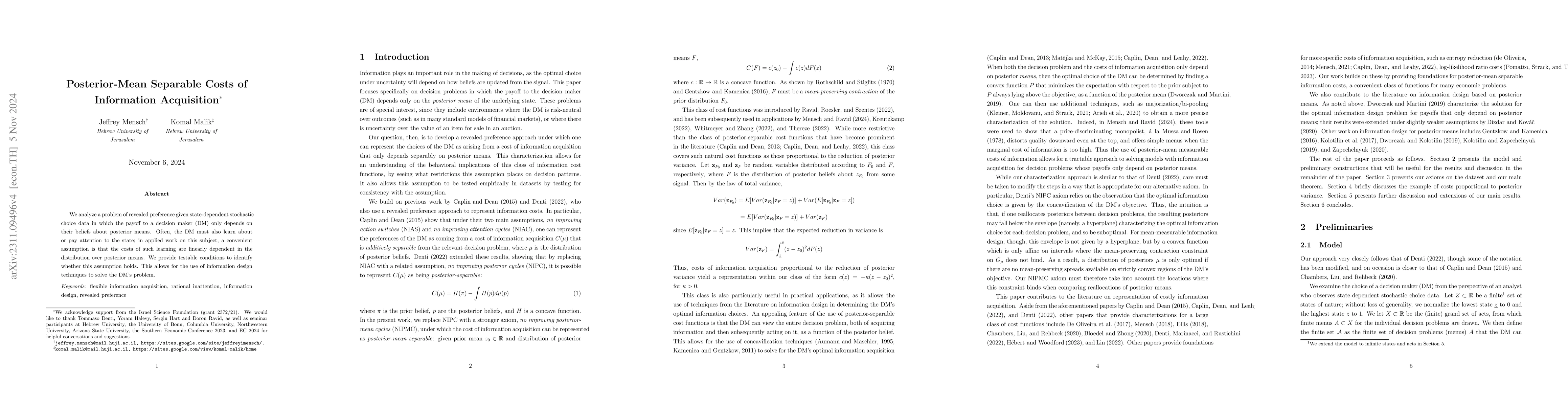 We analyze a problem of revealed preference given state-dependent stochastic choice data in which the payoff to a decision maker (DM) only depends on their beliefs about posterior means. Often, the DM must also learn about or pay attention to the state; in applied work on this subject, a convenient assumption is that the costs of such learning are linearly dependent in the distribution over posterior means. We provide testable conditions to identify whether this assumption holds. This allows for the use of information design techniques to solve the DM's problem.