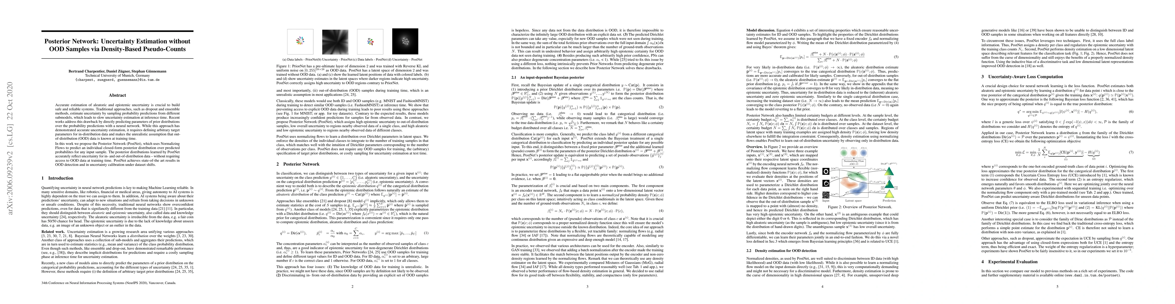 The Posterior Network (PostNet) uses Normalizing Flows to predict individual posterior distributions over predicted probabilities for any input sample, accurately estimating uncertainty without requiring out-of-distribution data at training time.