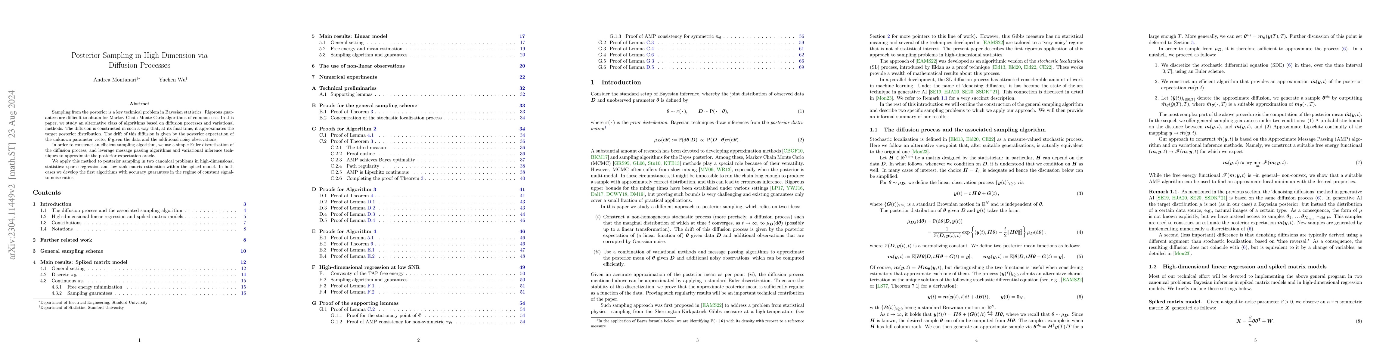 This paper proposes a novel sampling algorithm based on diffusion processes for posterior sampling in high-dimensional Bayesian statistics, specifically for the symmetric spiked model. The algorithm uses a discretized stochastic differential equation and an oracle for efficient sampling, providing the first approximation-guaranteed method for this problem.