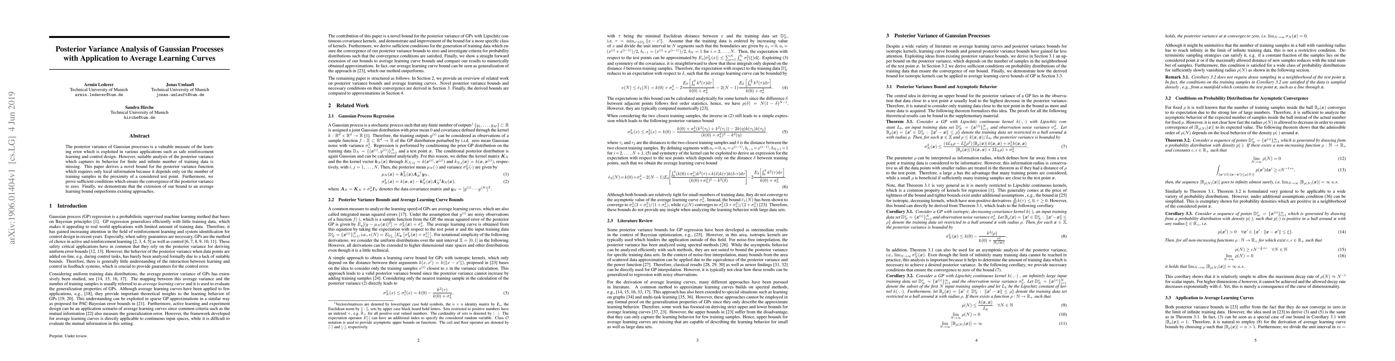 This paper develops a novel bound for the posterior variance of Gaussian processes, focusing on its behavior with finite and infinite training data. It provides sufficient conditions for the variance to converge to zero and shows that the proposed average learning curve bound outperforms existing methods.