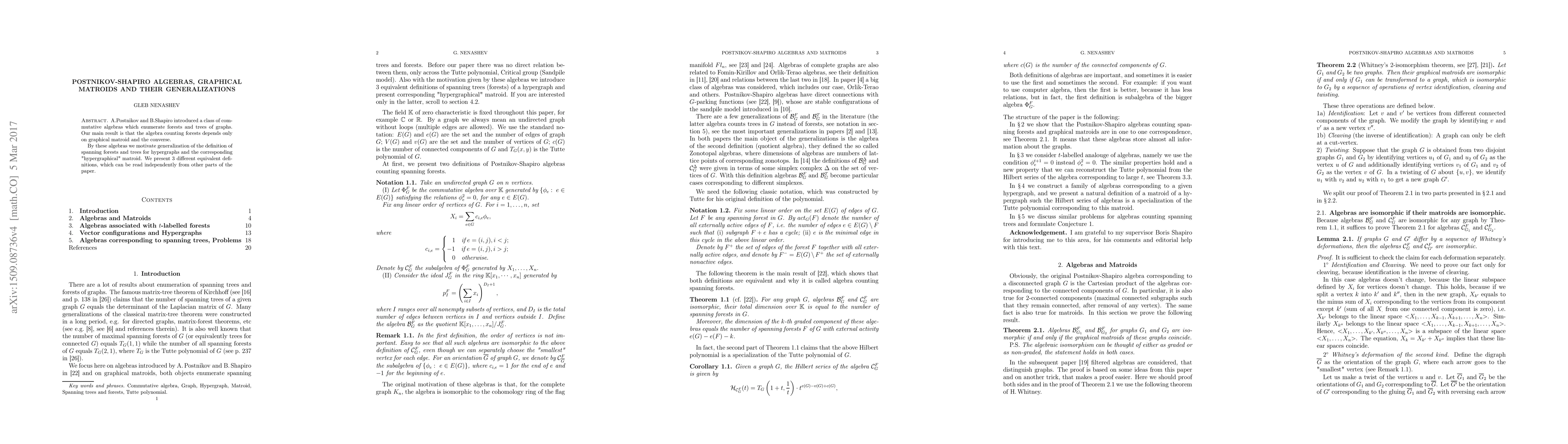 The paper establishes a connection between Postnikov-Shapiro algebras, graphical matroids, and their generalizations in hypergraphs, finding that forest counts depend only on the underlying matroid structure.