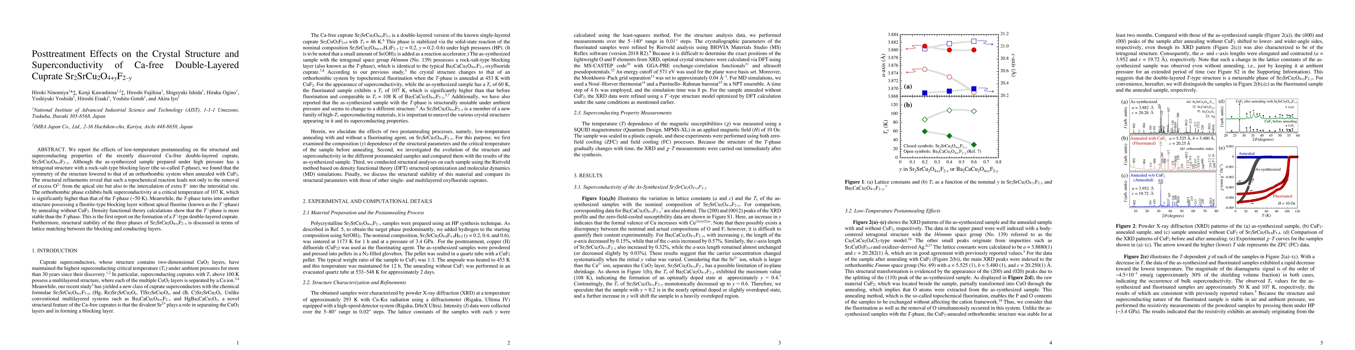 This paper investigates the effects of low-temperature postannealing on the crystal structure and superconductivity of Sr$_2$SrCu$_2$O$_{4+y}$F$_{2-y}$, a Ca-free double-layered cuprate. Postannealing with CuF$_2$ transforms the tetragonal $T$-phase to an orthorhombic phase with enhanced superconductivity at 107 K.