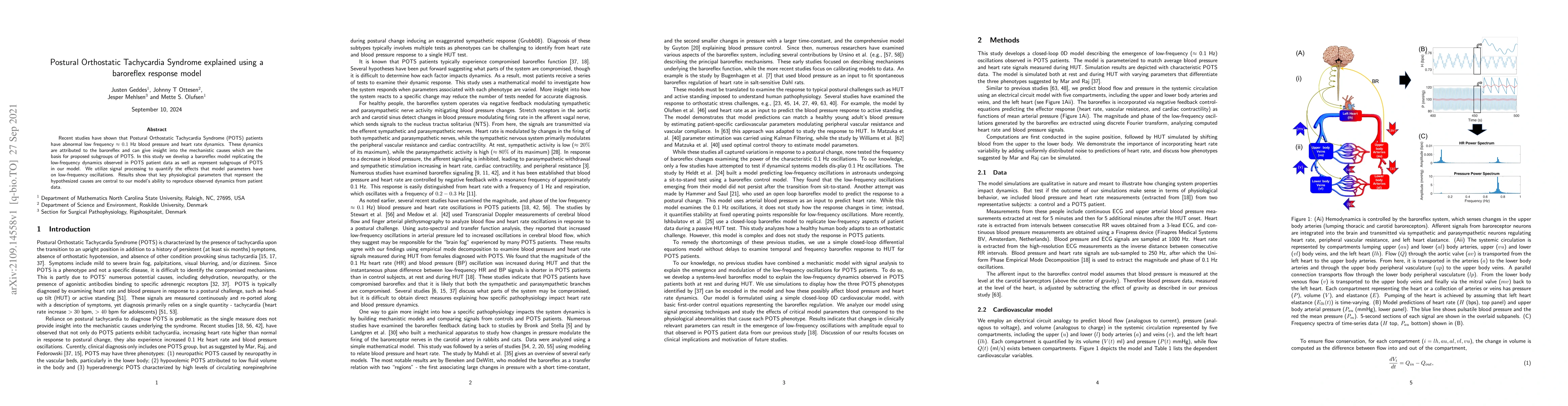 Researchers developed a baroreflex model that replicates low-frequency blood pressure and heart rate dynamics in Postural Orthostatic Tachycardia Syndrome patients, identifying key physiological parameters that explain the observed dynamics.